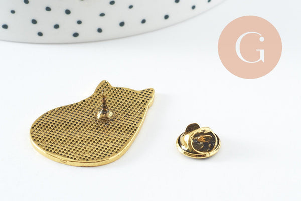 Broche chat assis gravée acier 304 inoxydable doré 35mm, x1 (G9785)