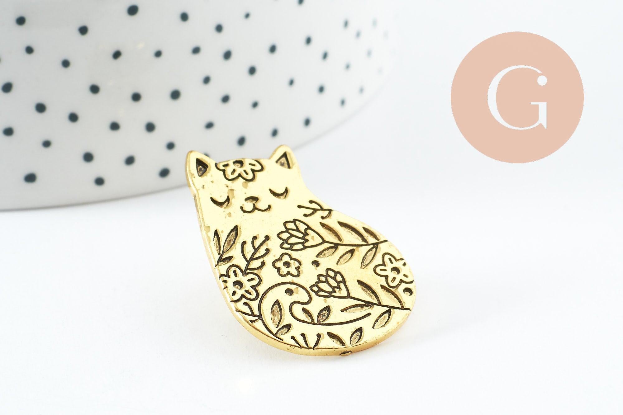 Broche gato sentado grabado acero 304 dorado 35mm, x1 (G9785)