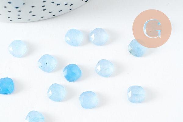 Adopte este cabujón cuadrado de jade natural facetado para crear joyas delicadas