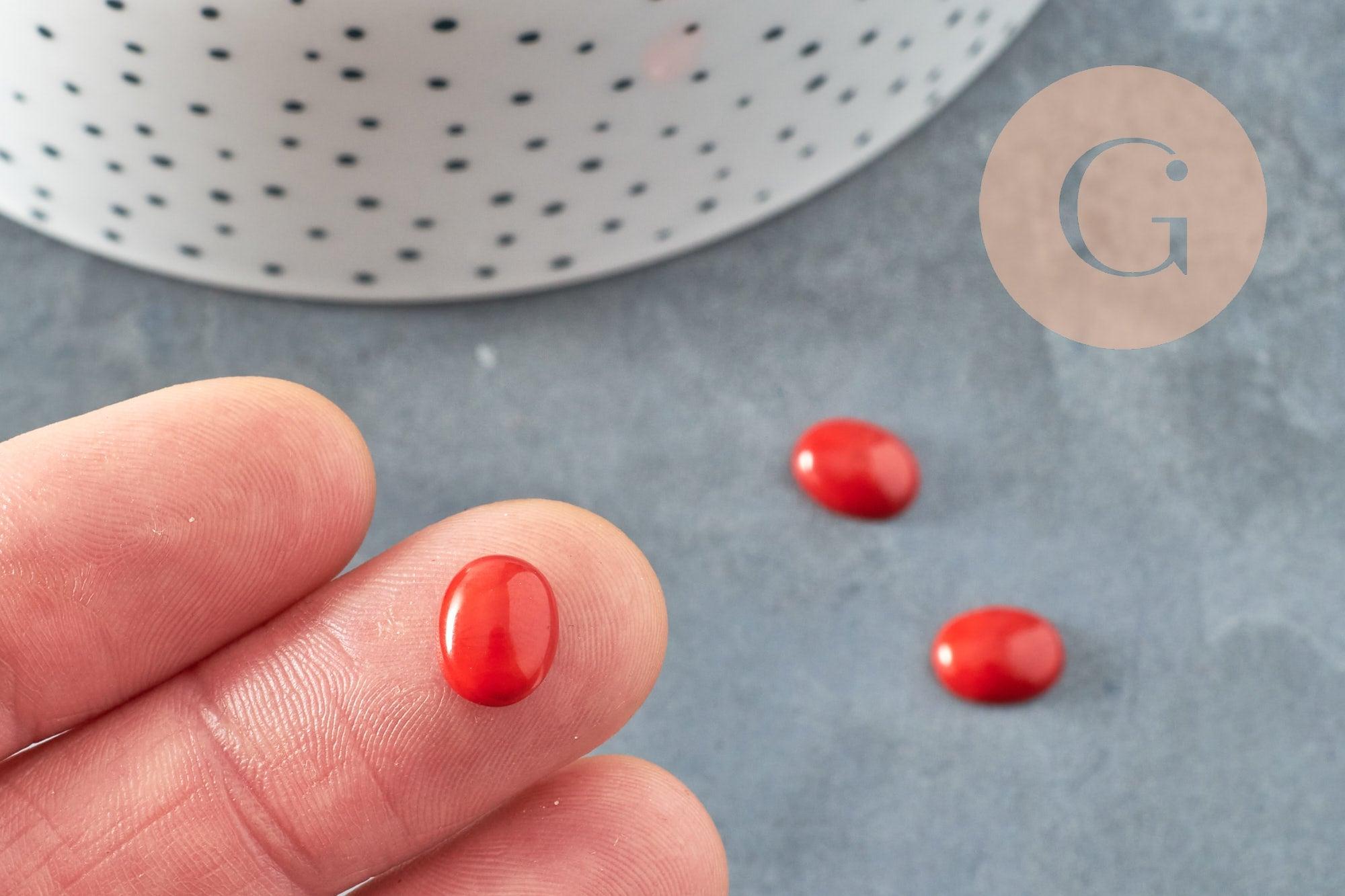 Cabujón ovalado de coral natural, teñido de rojo, 10x6mm, x1 G6750