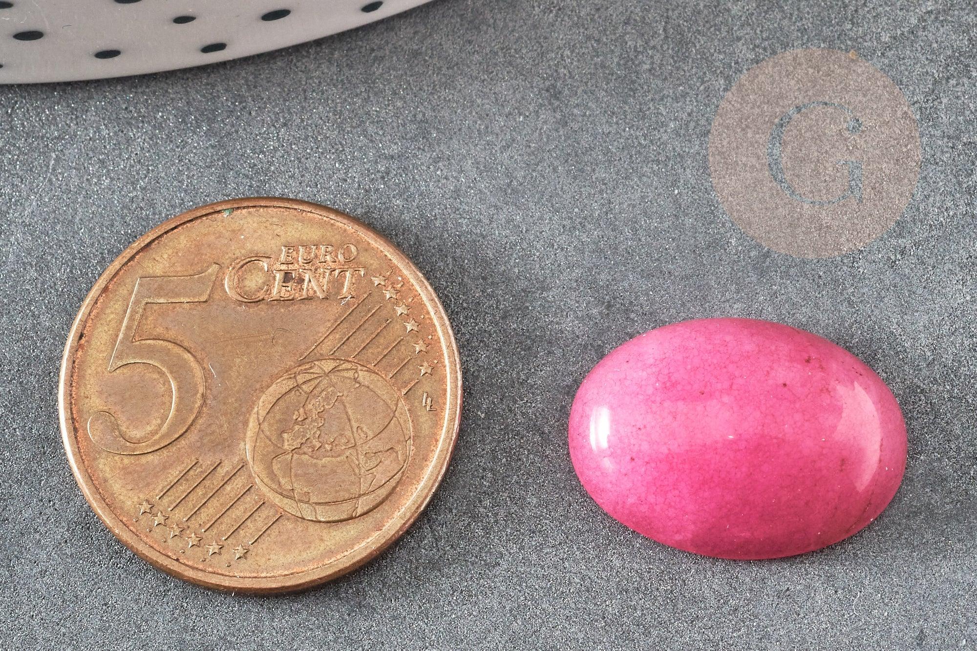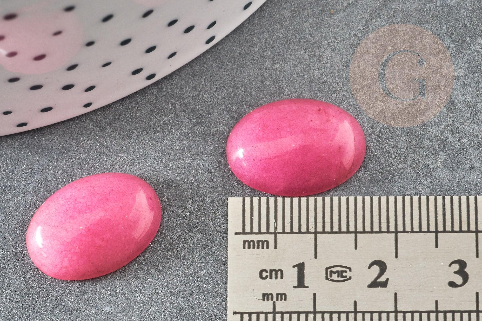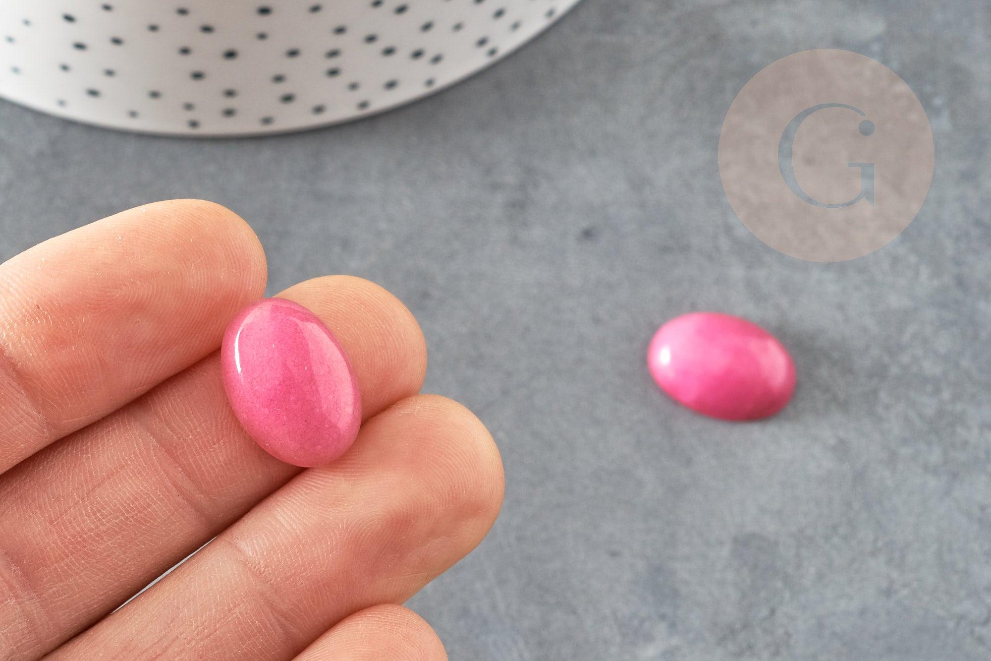 Este cabujón de jade natural teñido de rosa , de forma ovalada (18x13 mm) , ofrece un tono suave y femenino, perfecto para creaciones elegantes y románticas. El jade es una piedra apreciada por su simbolismo de serenidad y equilibrio.