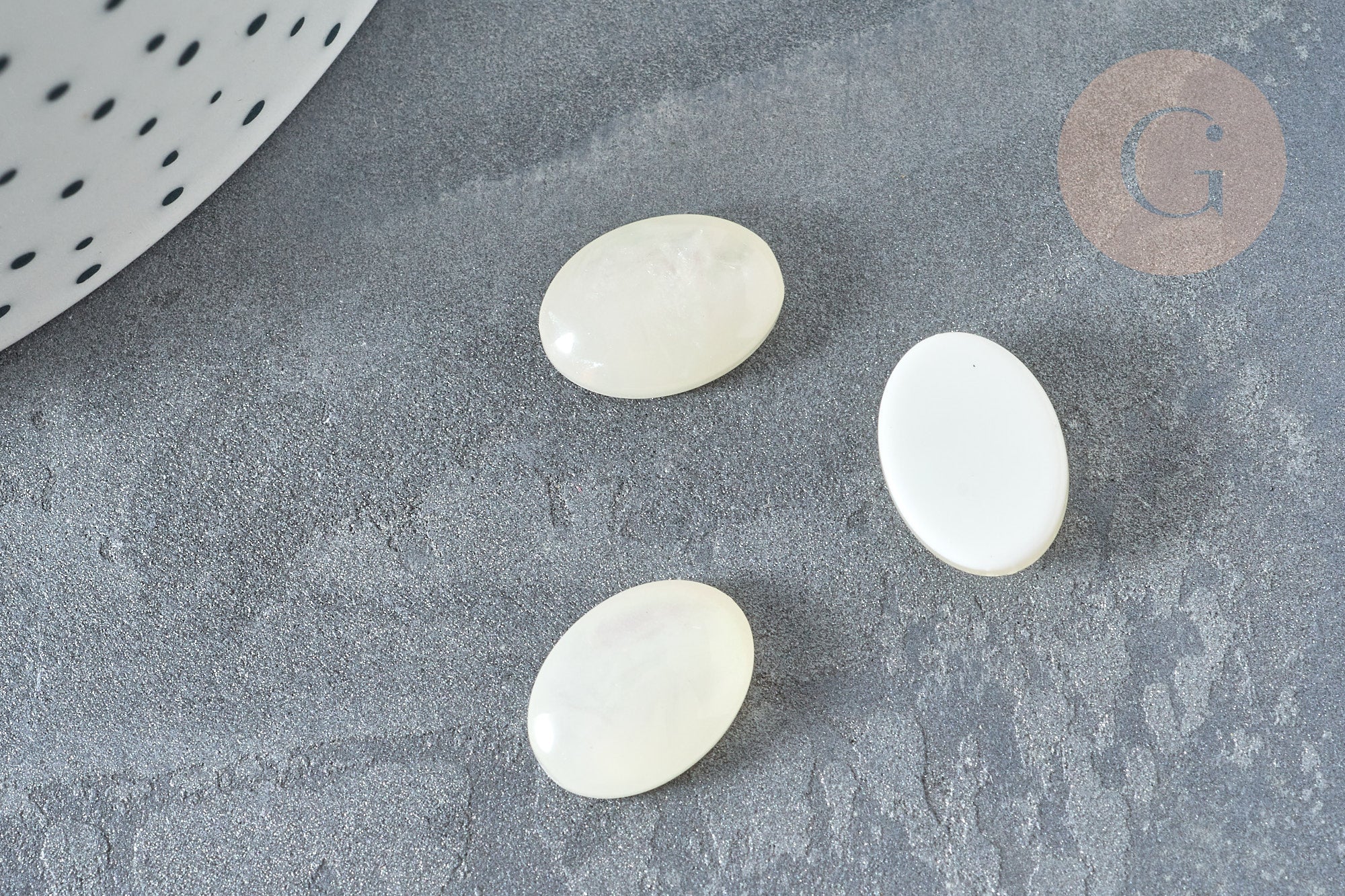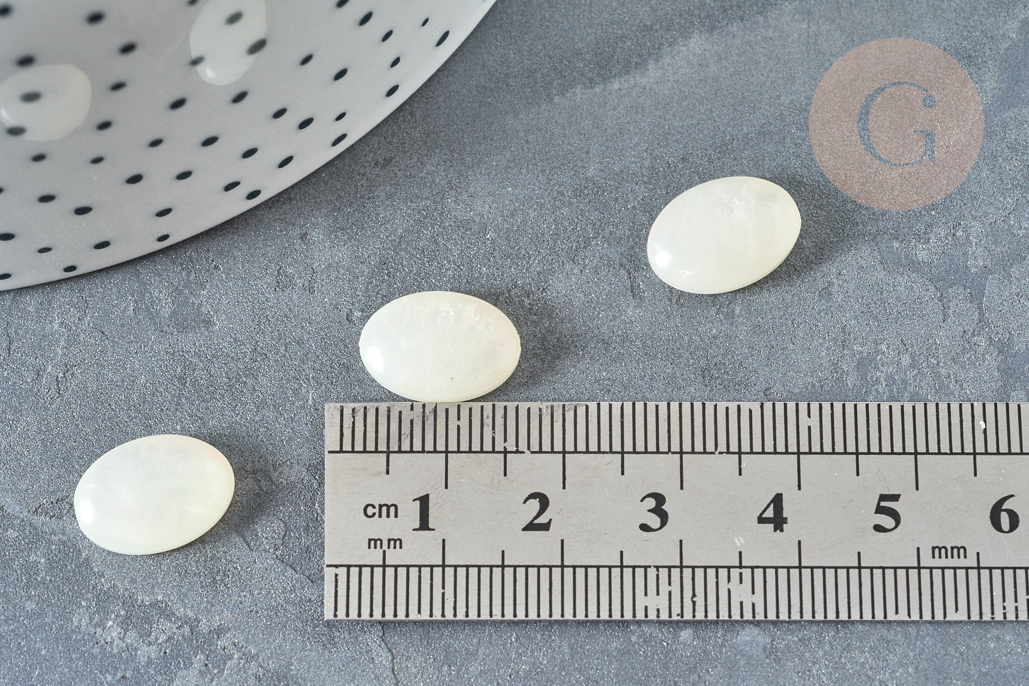 Adopta esto cabujón ovalado de resina blanca, imitación nácar que te permitirá hacer Bisutería DIY y accesorios muy ligeros. De hecho, son mucho más ligeros que los cabujones de vidrio o de piedras preciosas.