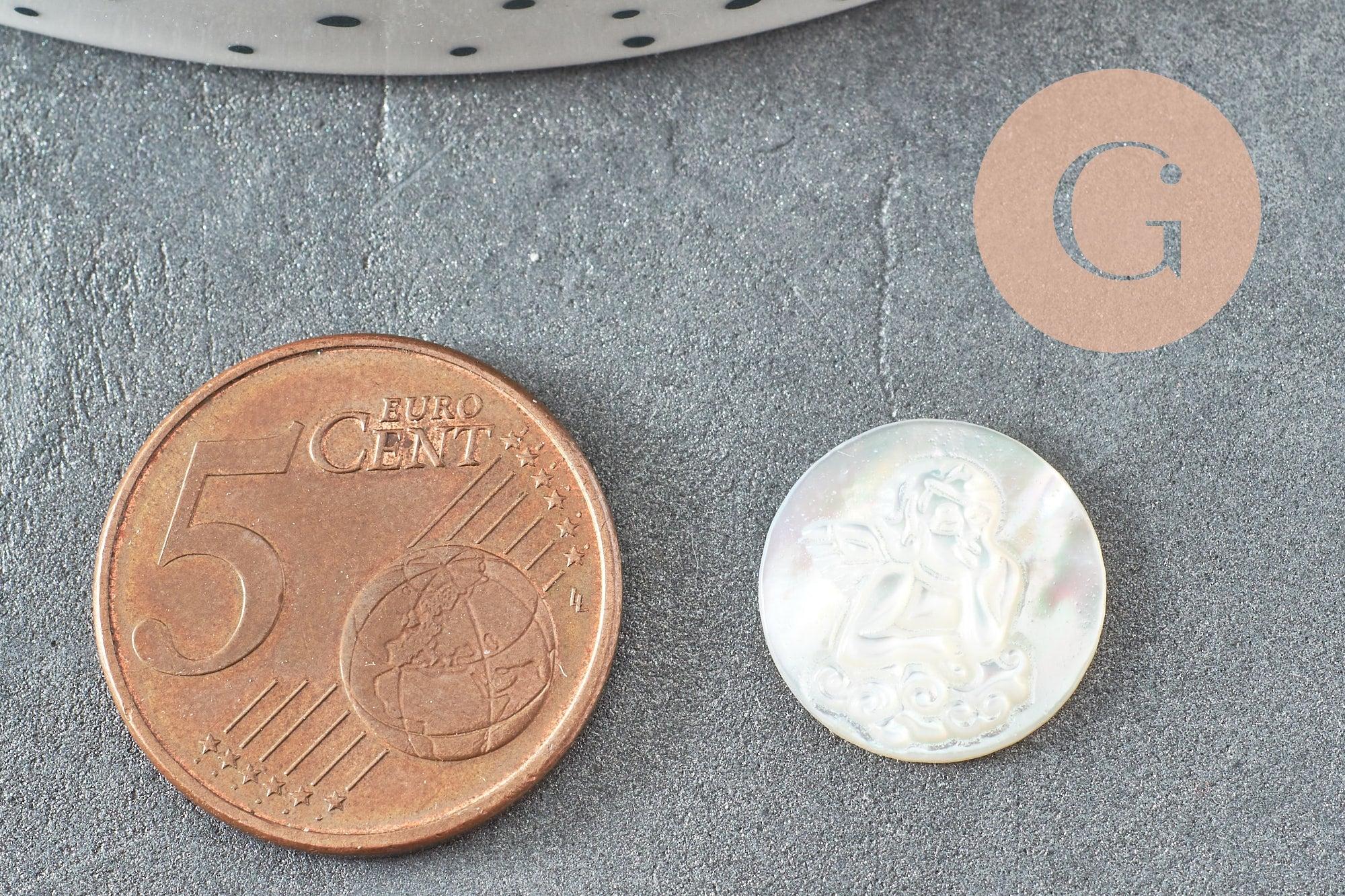 Cabochon rond ange nacre blanche naturelle gravé 14mm, x1 (G9626)