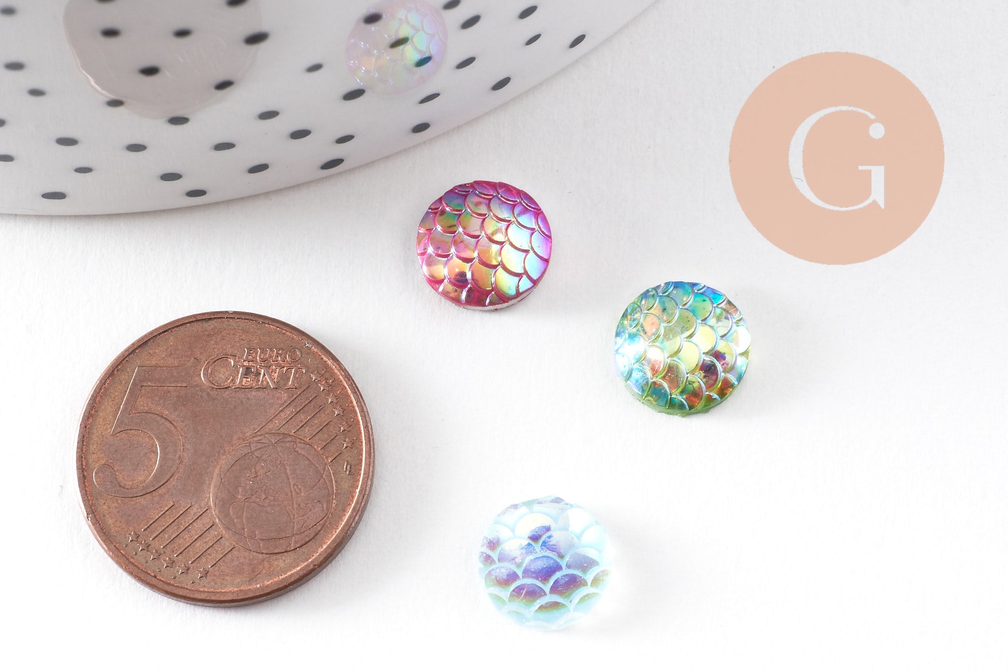Cabochon rond écailles résine irisée multicolore 10mm, x5 (G7101)