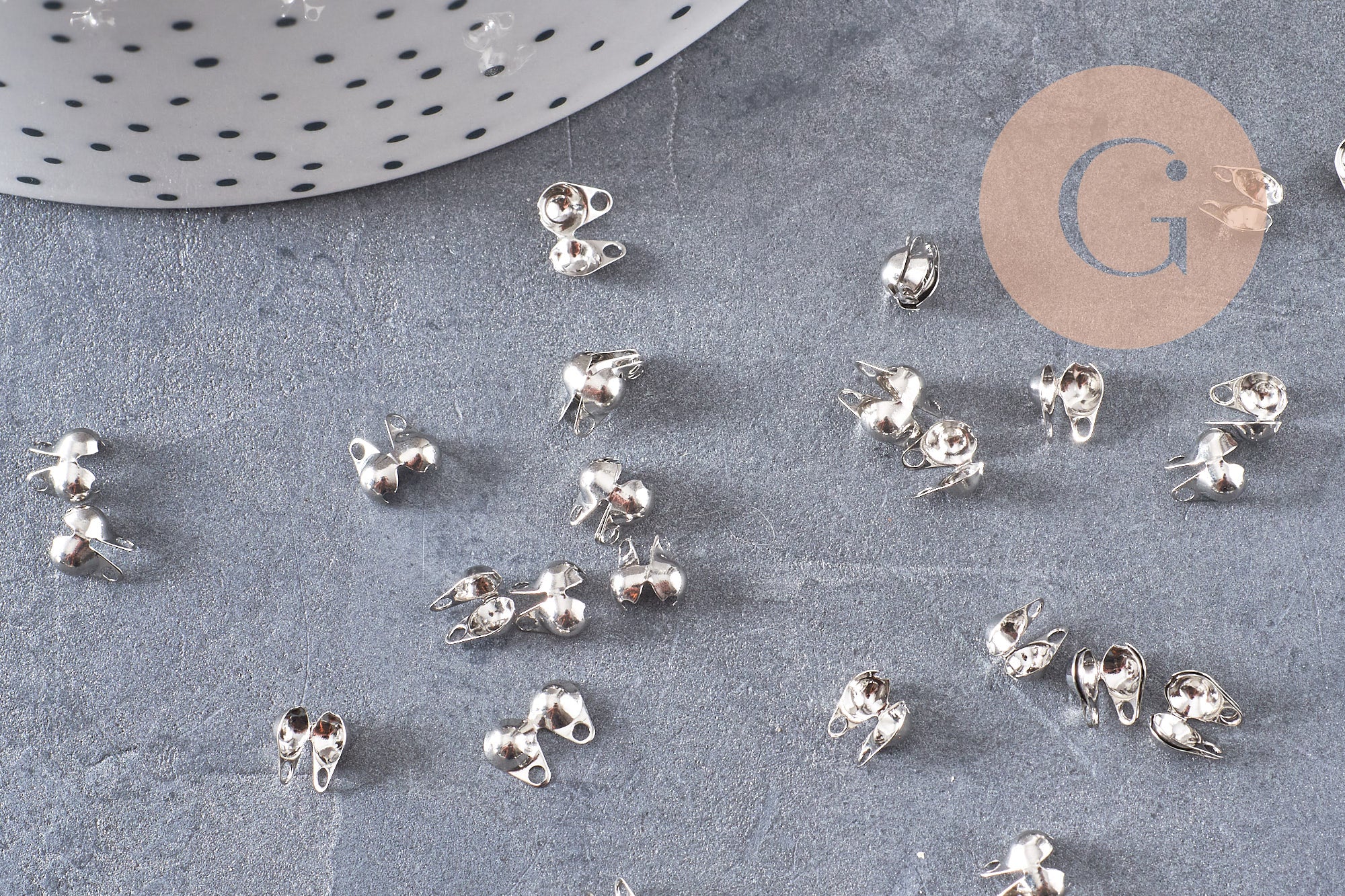Estos cubrenudos de latón platino son perfectos para dar un toque elegante a tus creaciones de cadenas de bolas (de hasta 3 mm de diámetro). Gracias a su apertura y diseño discreto, te permiten conectar fácilmente tus cadenas a un cierre o anilla.
