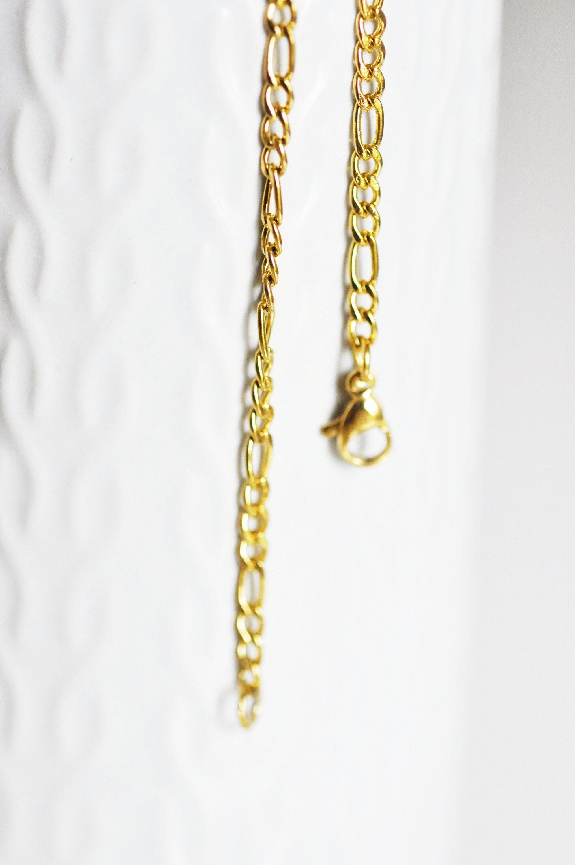Con este collar completo , tendrás un collar chic y elegante . Este está hecho de acero inoxidable dorado de muy buena calidad. Una cadena de fantasía con eslabones de fígaro , para combinar con otras cadenas y creaciones de joyería de fantasía .