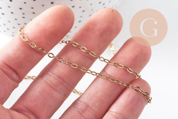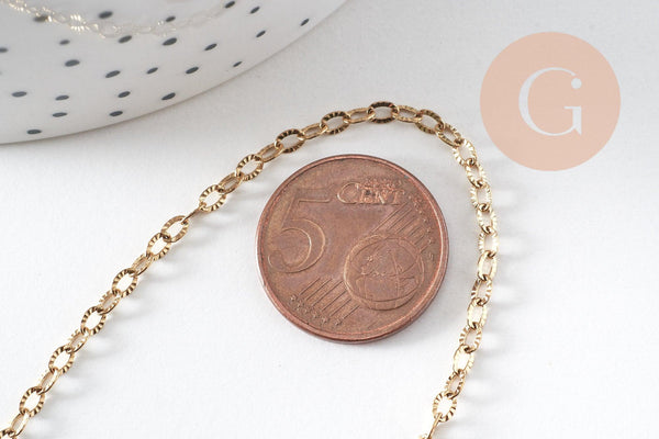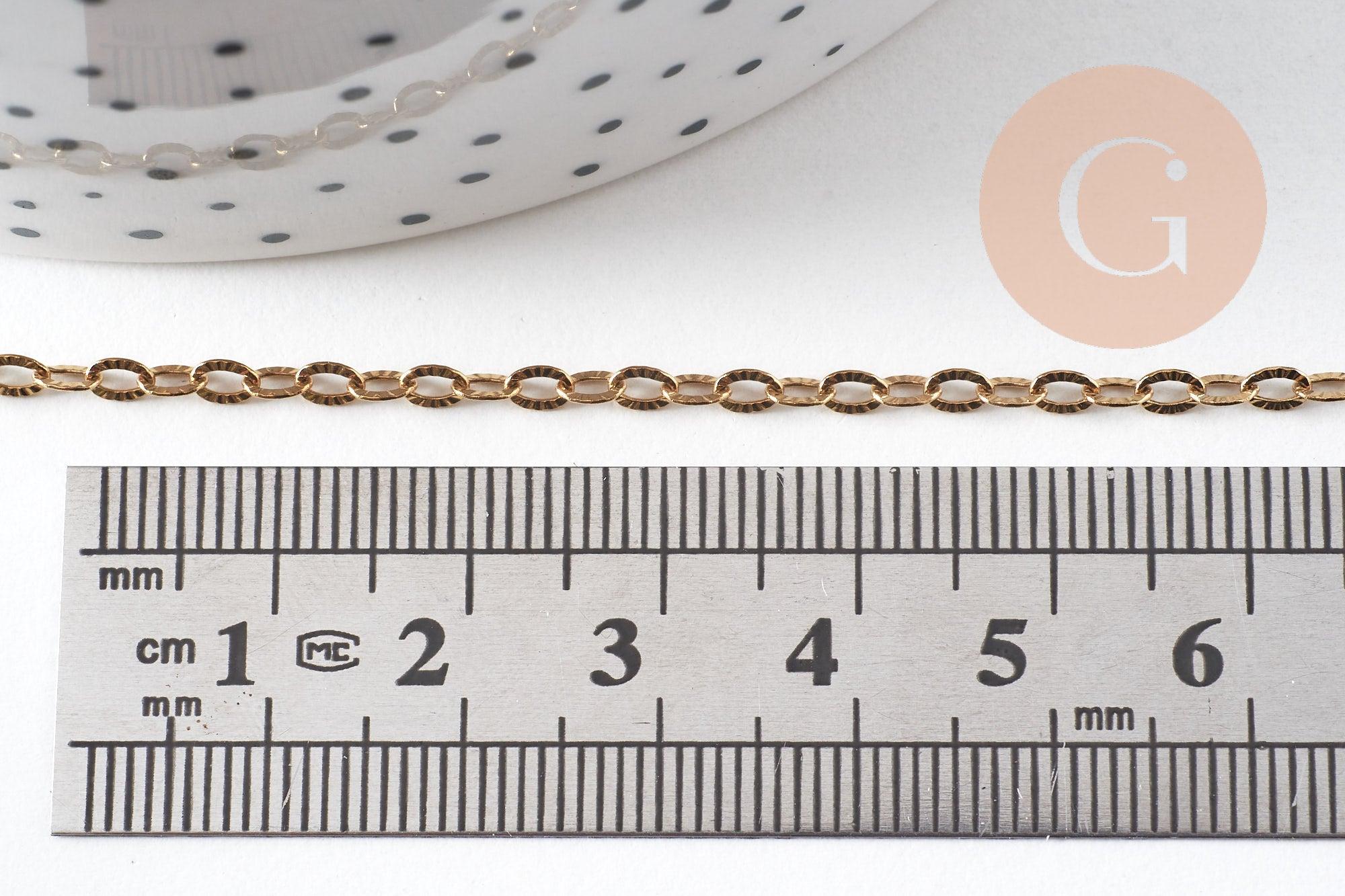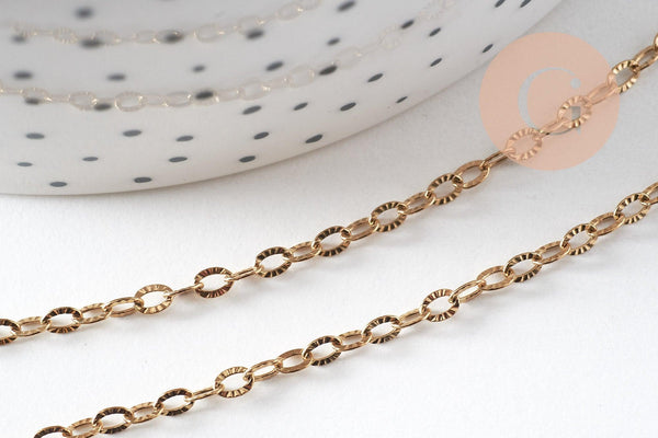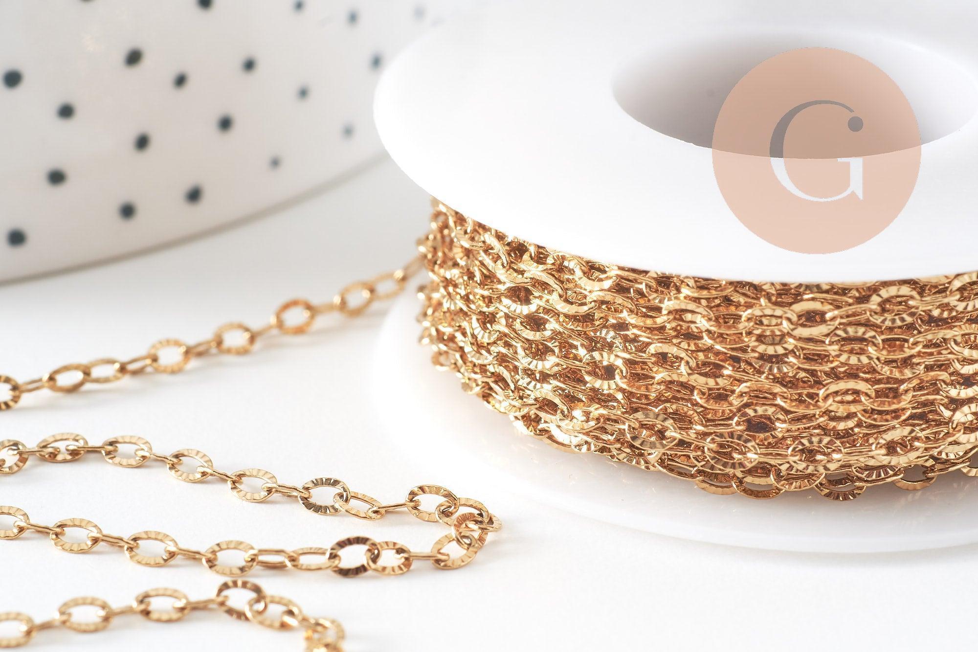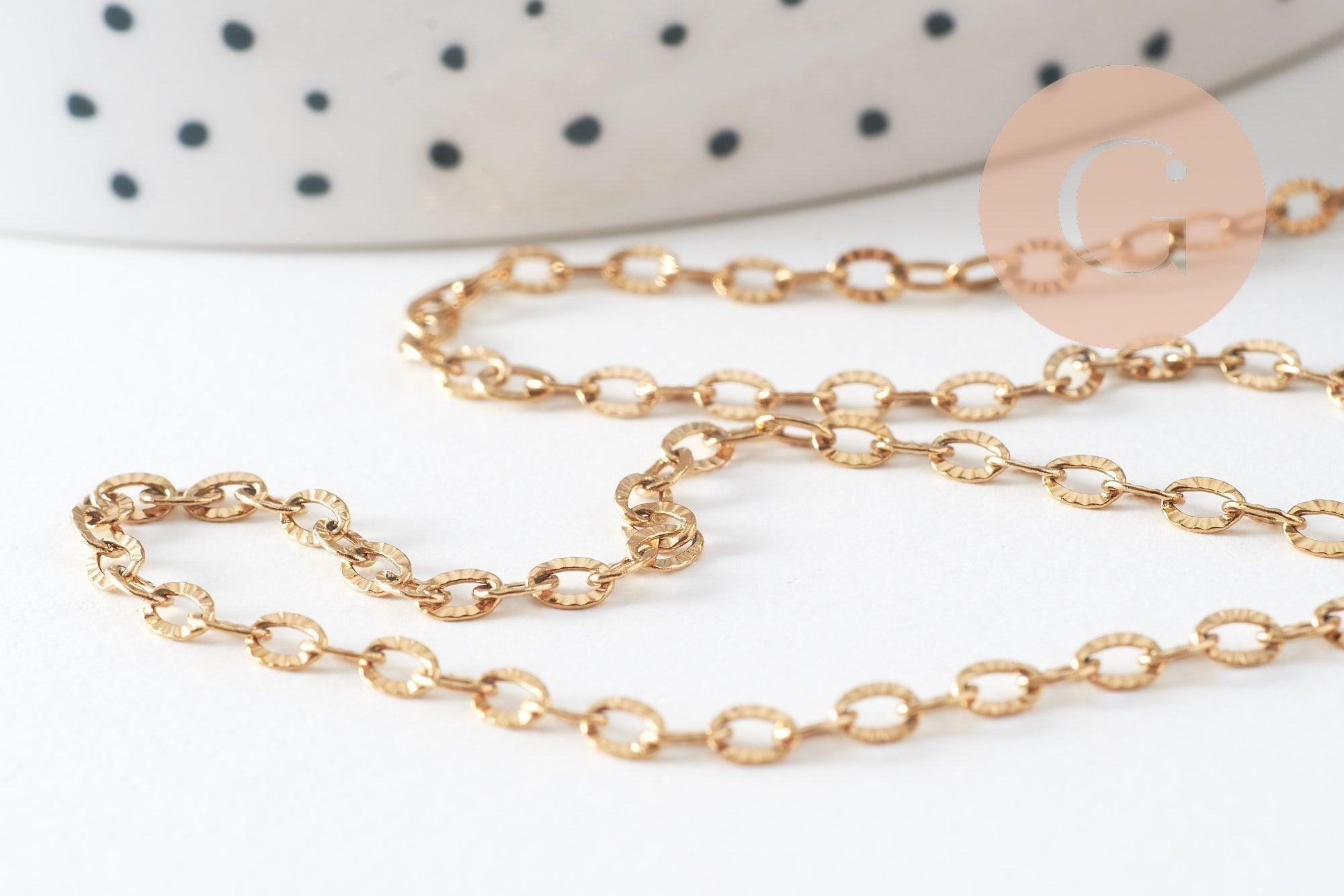 Una bonita cadena de eslabones curvos texturizada de acero bañado en oro .
