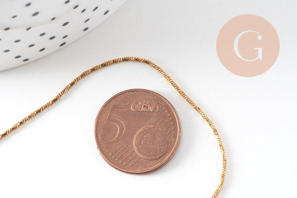 Aporta un toque de elegancia atemporal a tus creaciones con esta cadena de serpiente de acero inoxidable bañada en oro de 14 quilates , ligeramente retorcida para un efecto luminoso y refinado. Su diseño fluido y fino lo convierte en un imprescindible para un look minimalista y sofisticado.