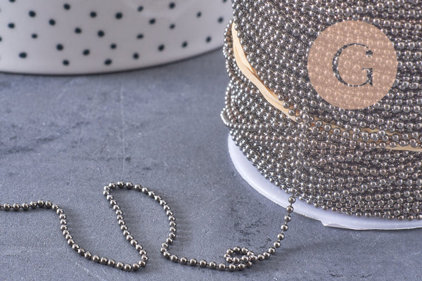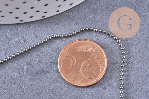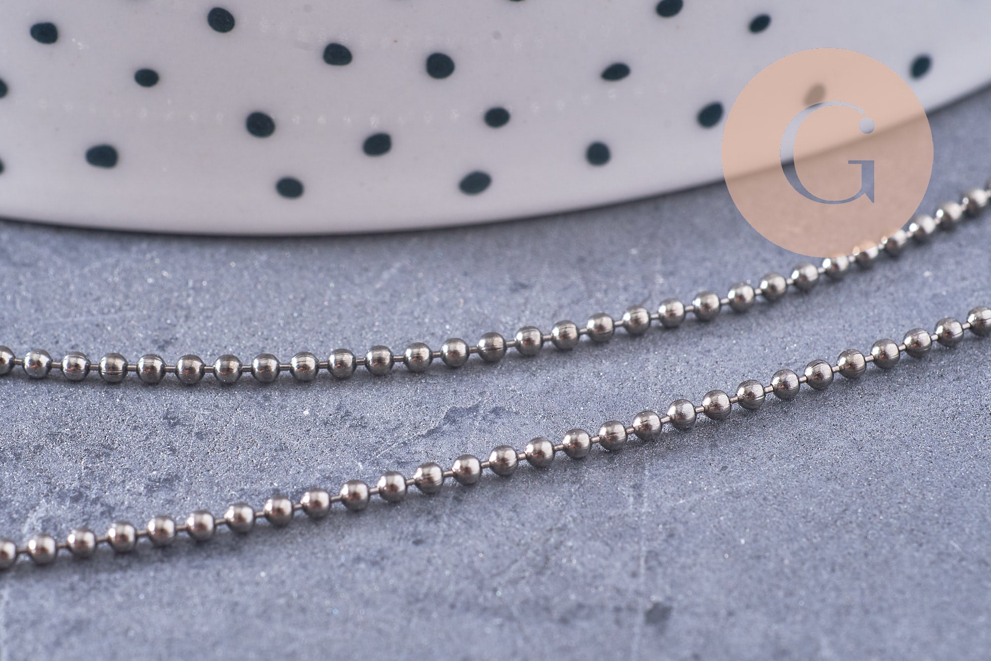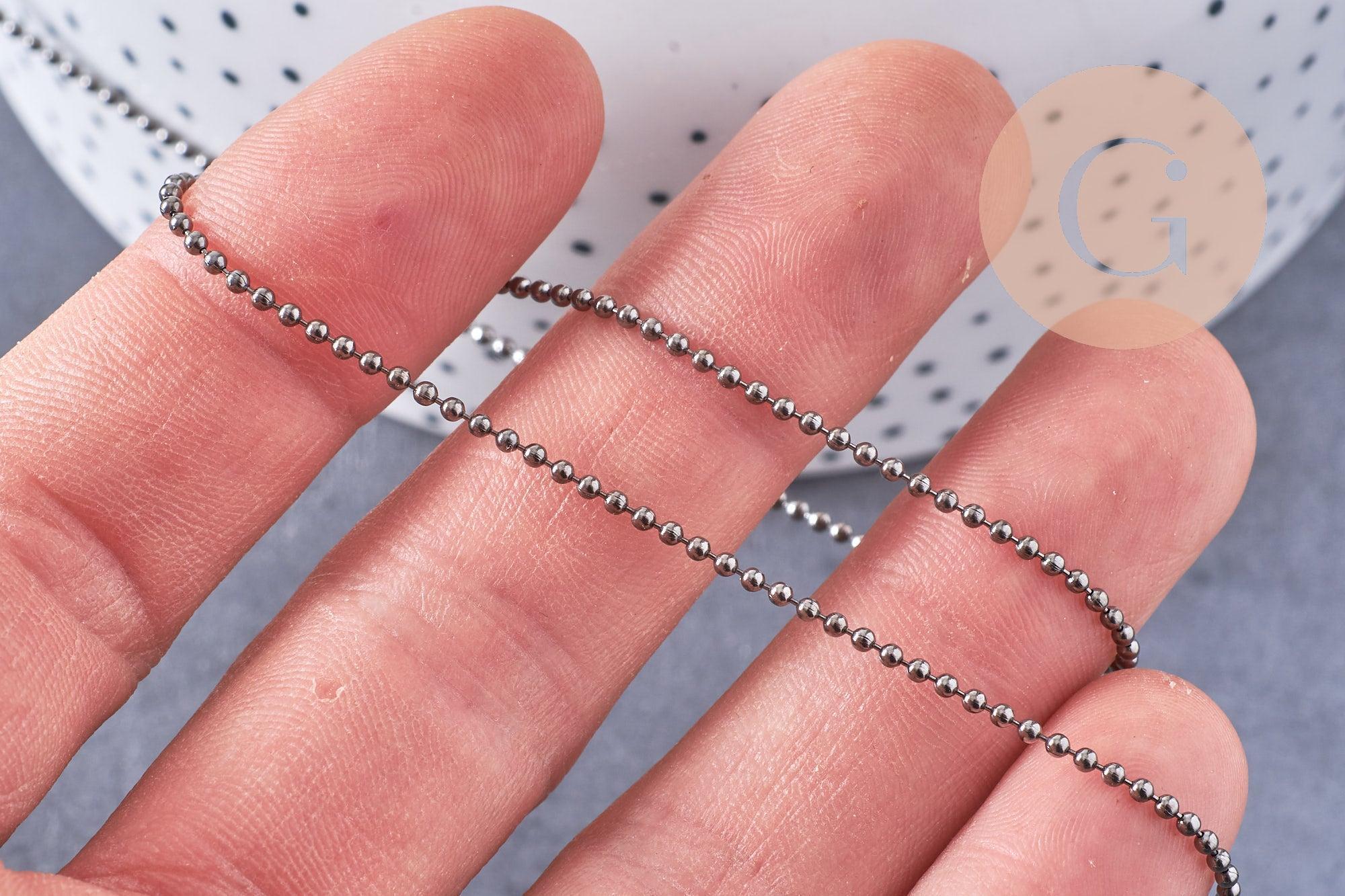 Dale un toque contemporáneo a tus creaciones con esta cadena de bolas de latón metalizado negro , con su elegante y moderno acabado. Su malla fina y regular la convierte en un básico esencial para todas tus creaciones de joyería, desde las más minimalistas hasta las más atrevidas.