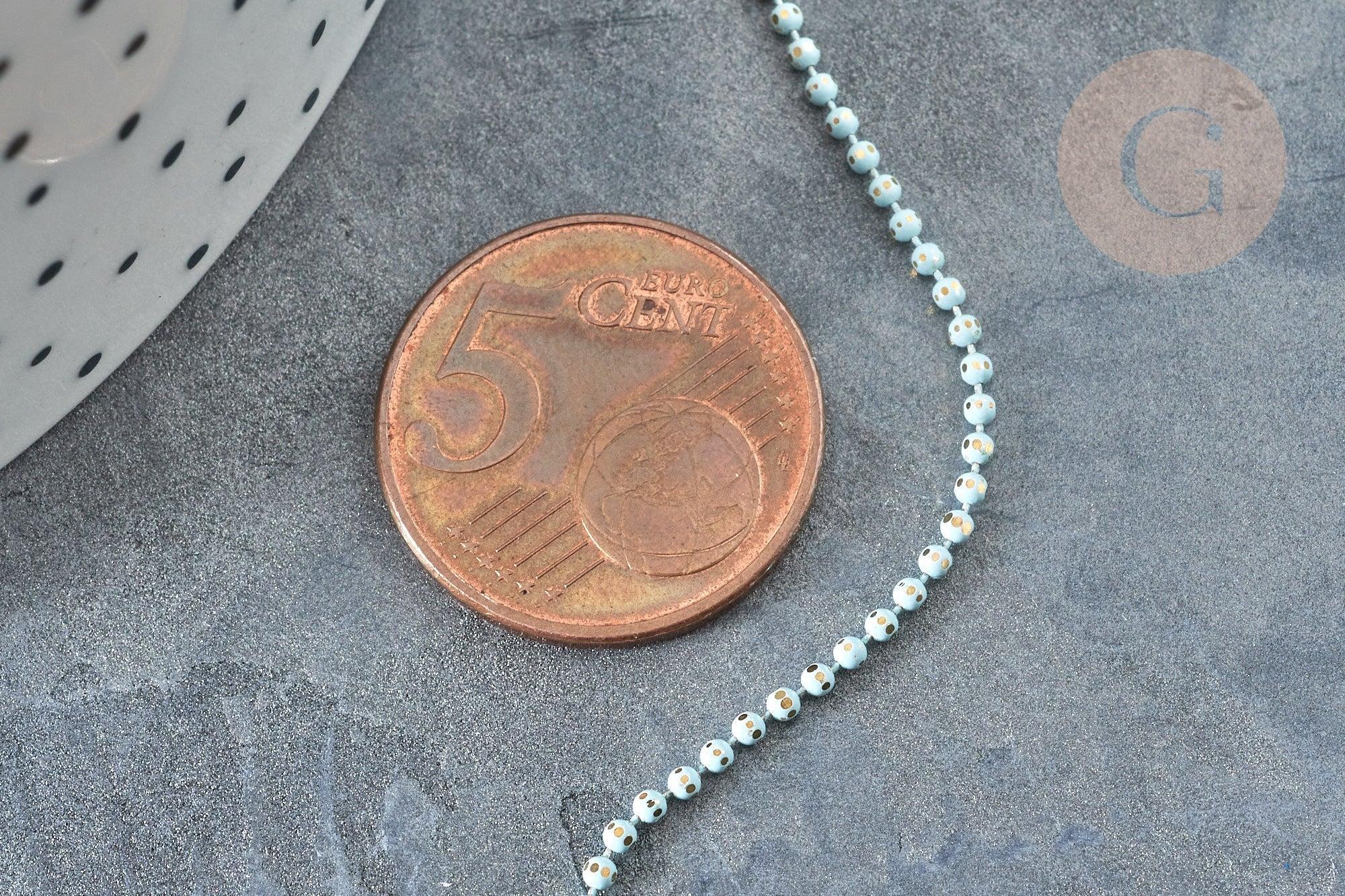 Cadena de bolas facetadas turquesa en latón bañado en oro, 1,5 mm, x5 metros (G7833)