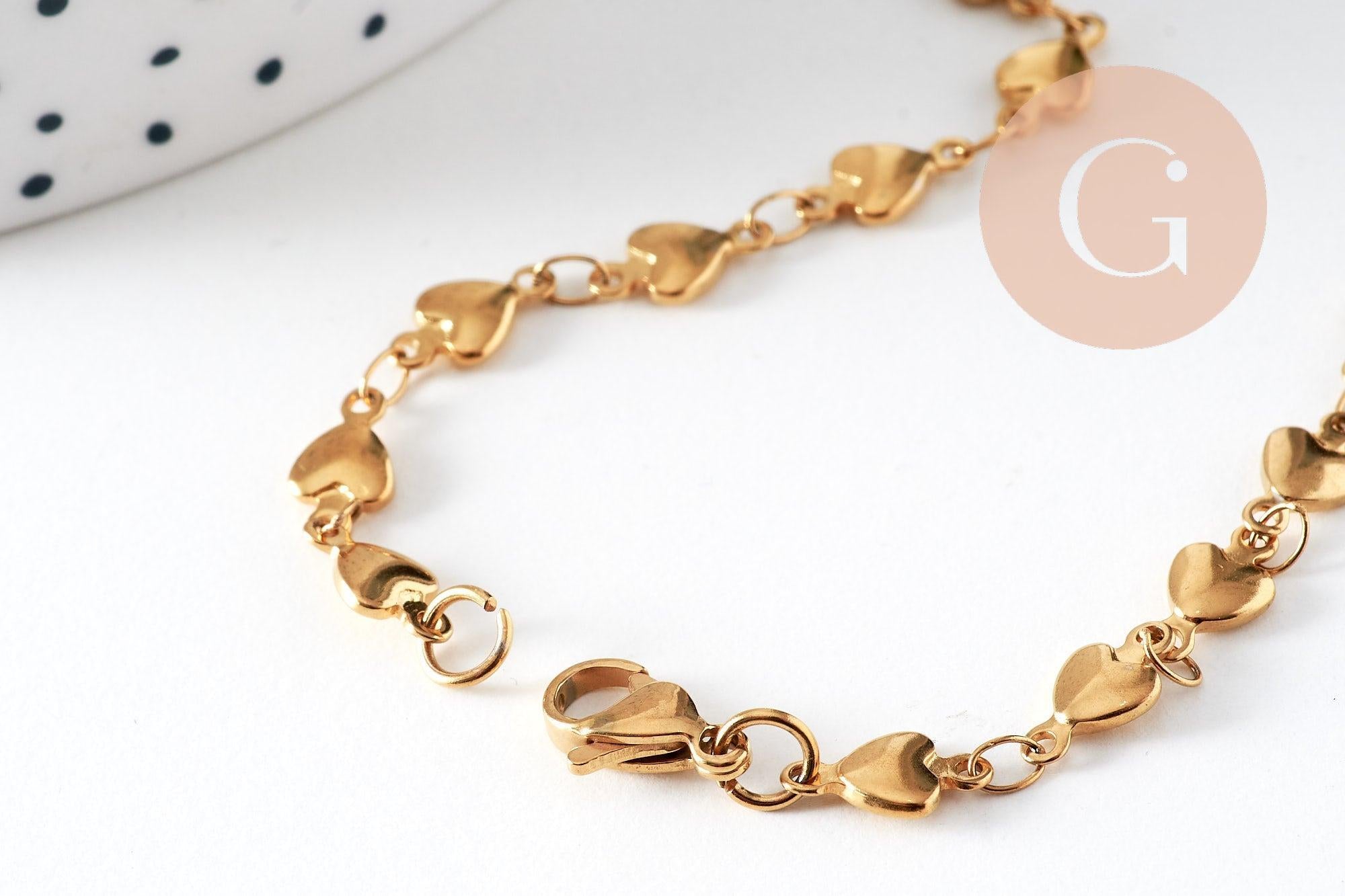 Una elegante cadena con pequeños corazones en color oro de 14 quilates que se vende completa con cierre.