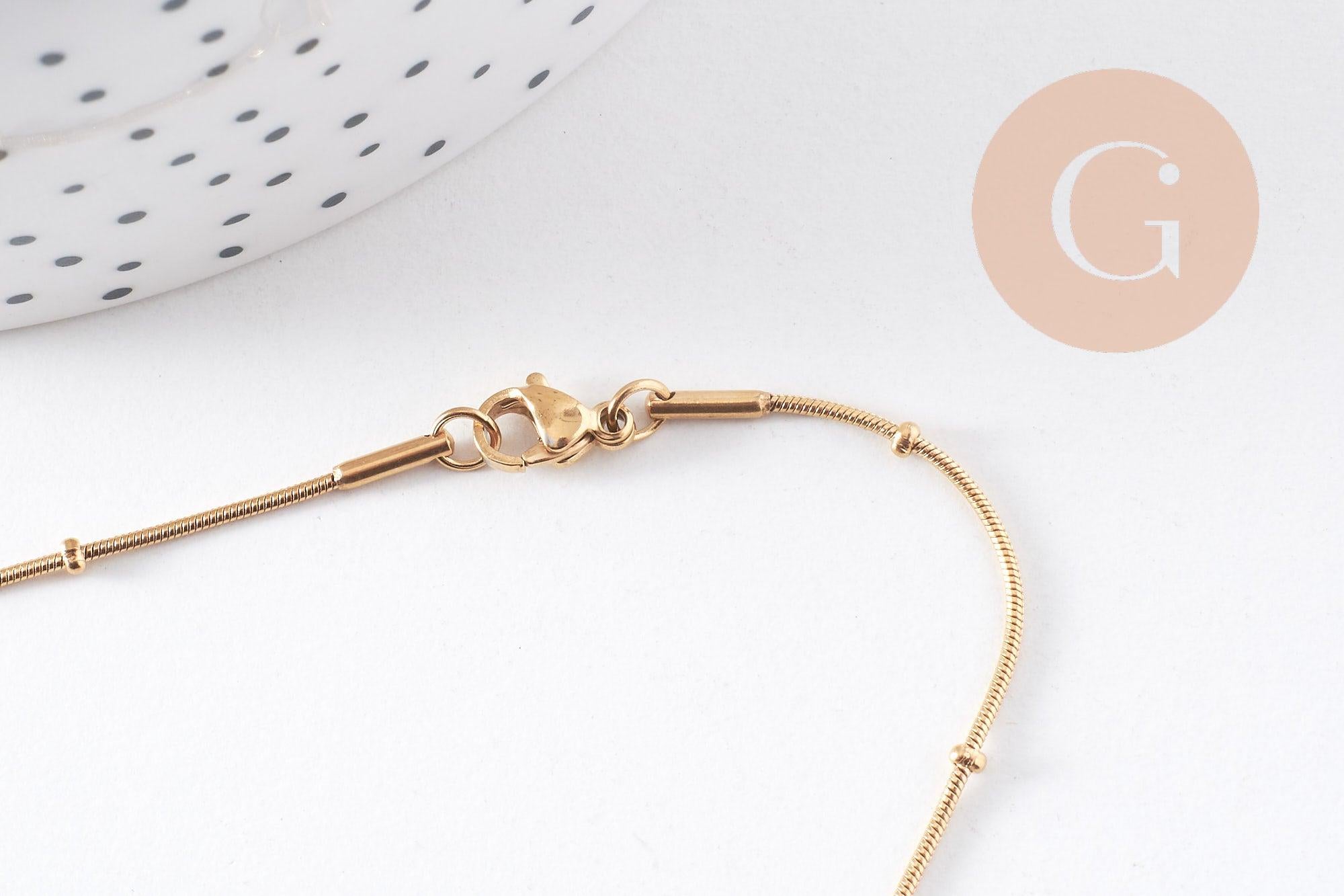 Chaine complète acier doré 14k satellite 0.9mm-50cm,chaine collier acier inoxydable,sans nickel, x1 (G5796)