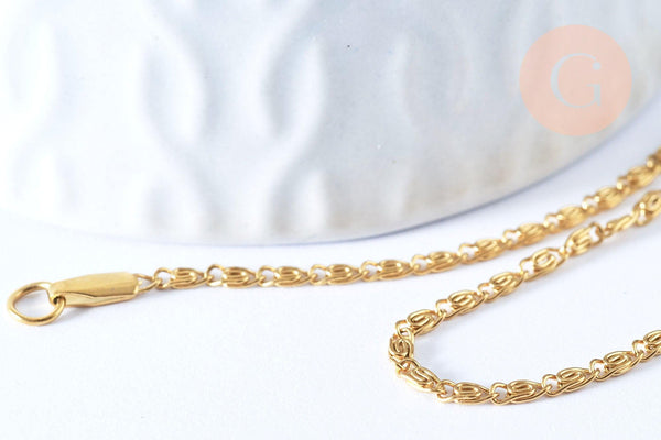 Cadena completa de eslabones múltiples en acero inoxidable 304 dorado, 44,5 cm - 2 mm, x1 (G6976)