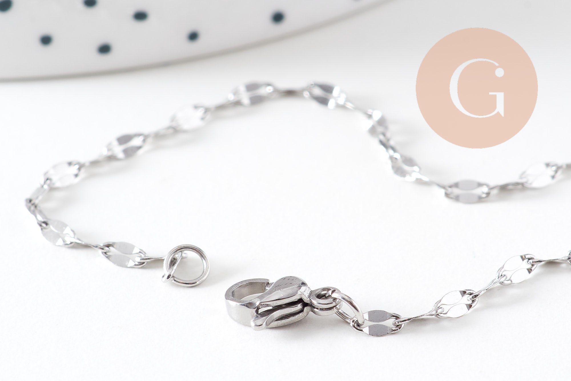Cadena completa con cierre de acero inoxidable platino 45cm, x1 (G6566)