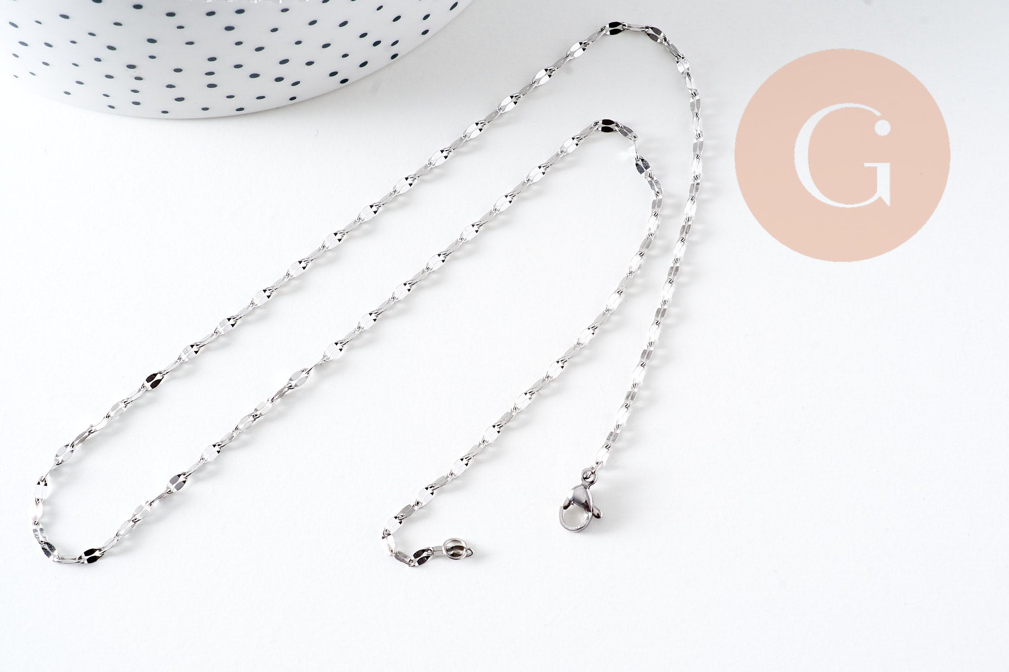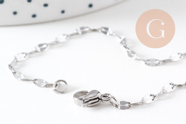 Chaine complète avec fermoir acier inoxydable platine 45cm, x1 (G6566)
