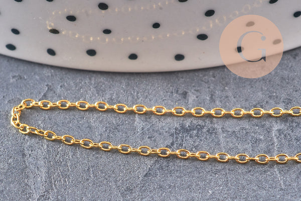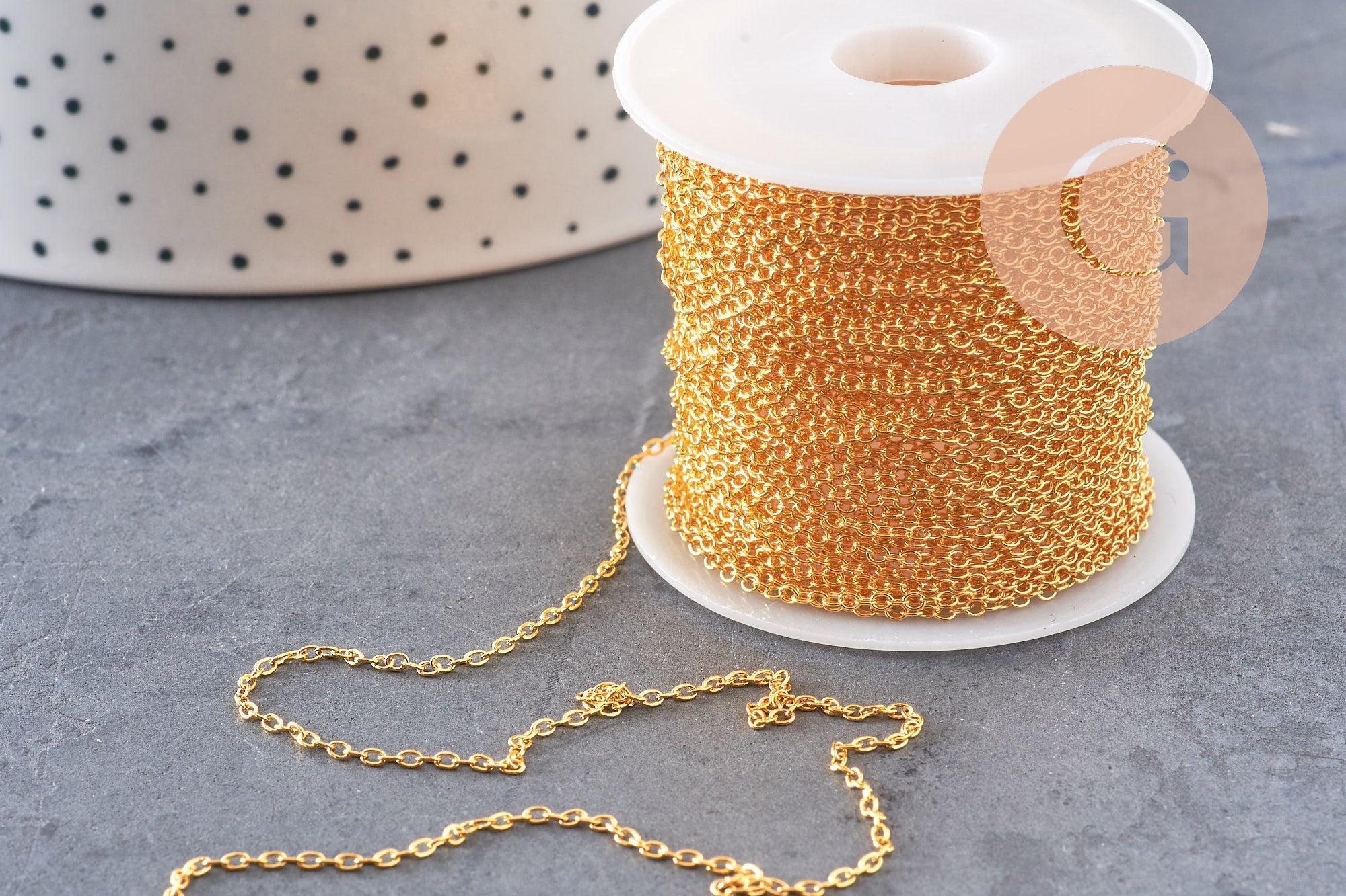 Imprescindible en cualquier colección de suministros, esta fina cadena de latón bañada en oro con eslabón barbado es perfecta para crear collares, collares largos, pulseras y pendientes . Su finura y brillo la convierten en la base ideal para creaciones elegantes y delicadas.
