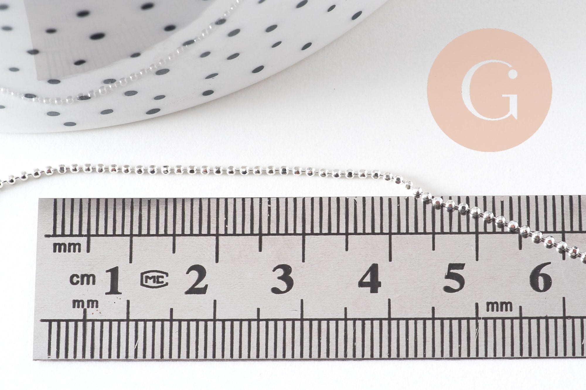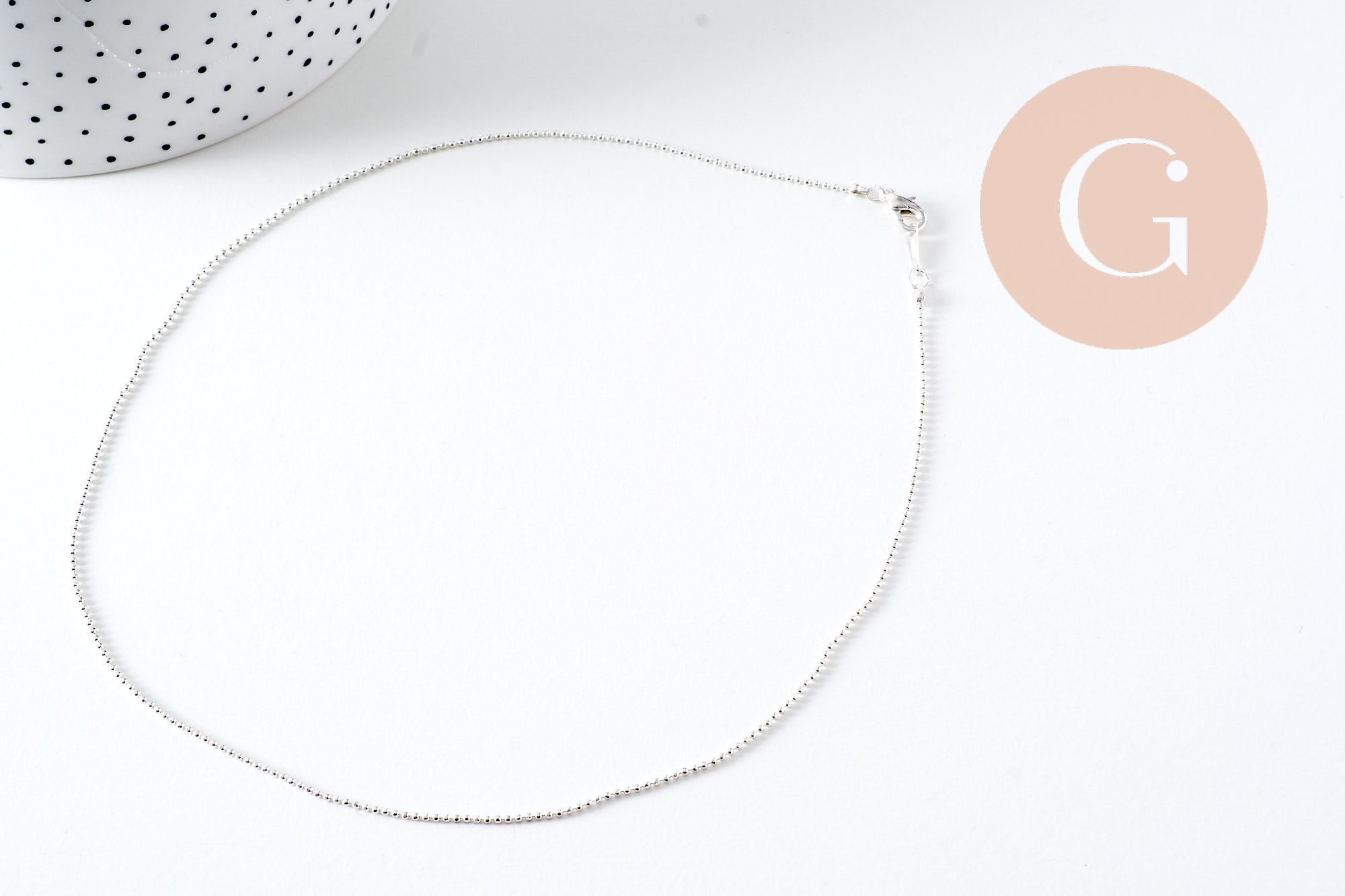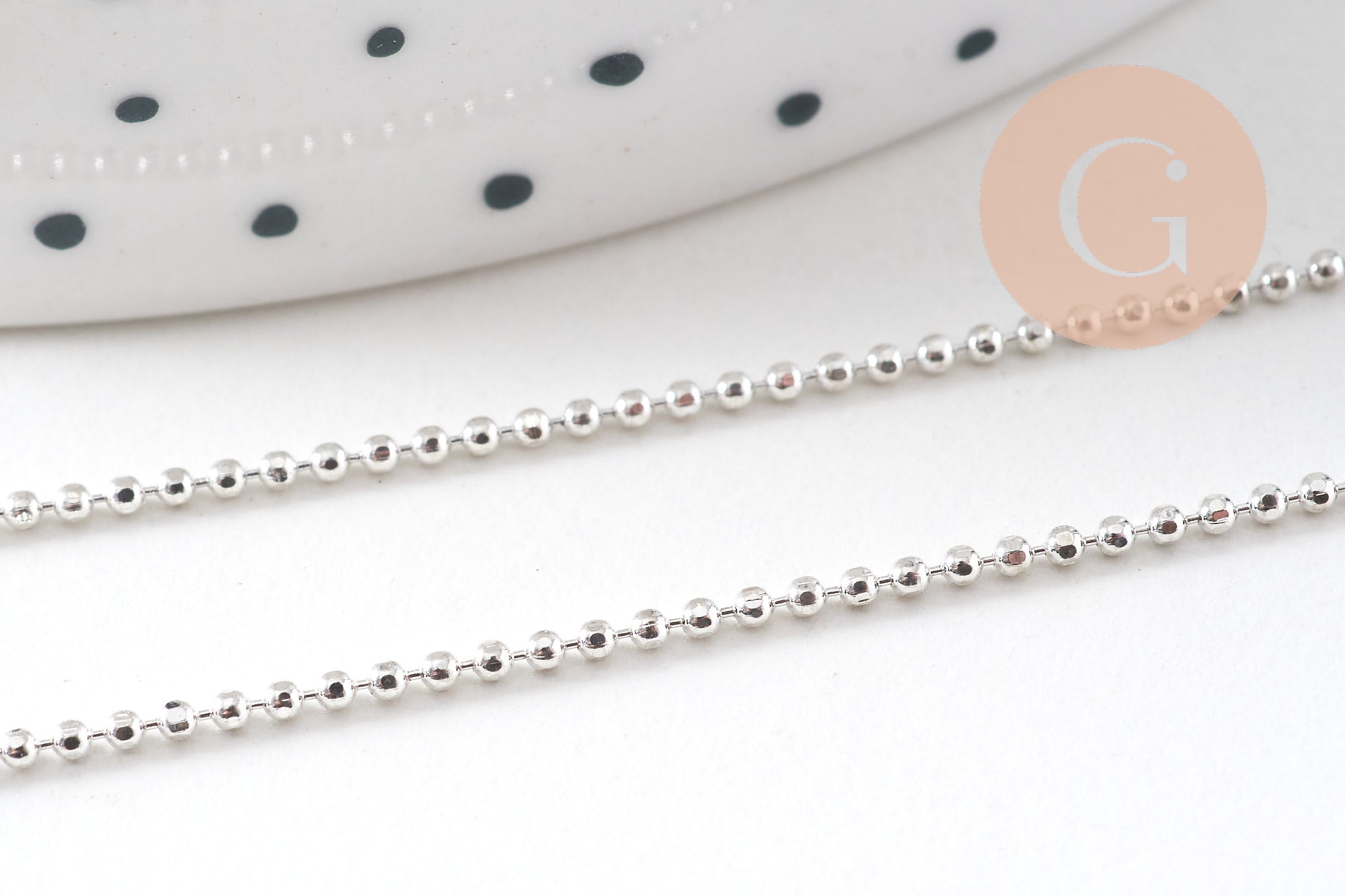 Cadena fina de latón bañado en plata con bolas facetadas de 1,2 mm/45 cm, cadena de collar de latón bañado en plata, cadena completa con cierre x1 (G6201)