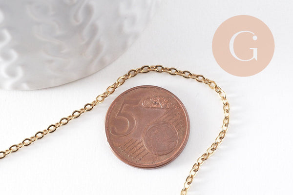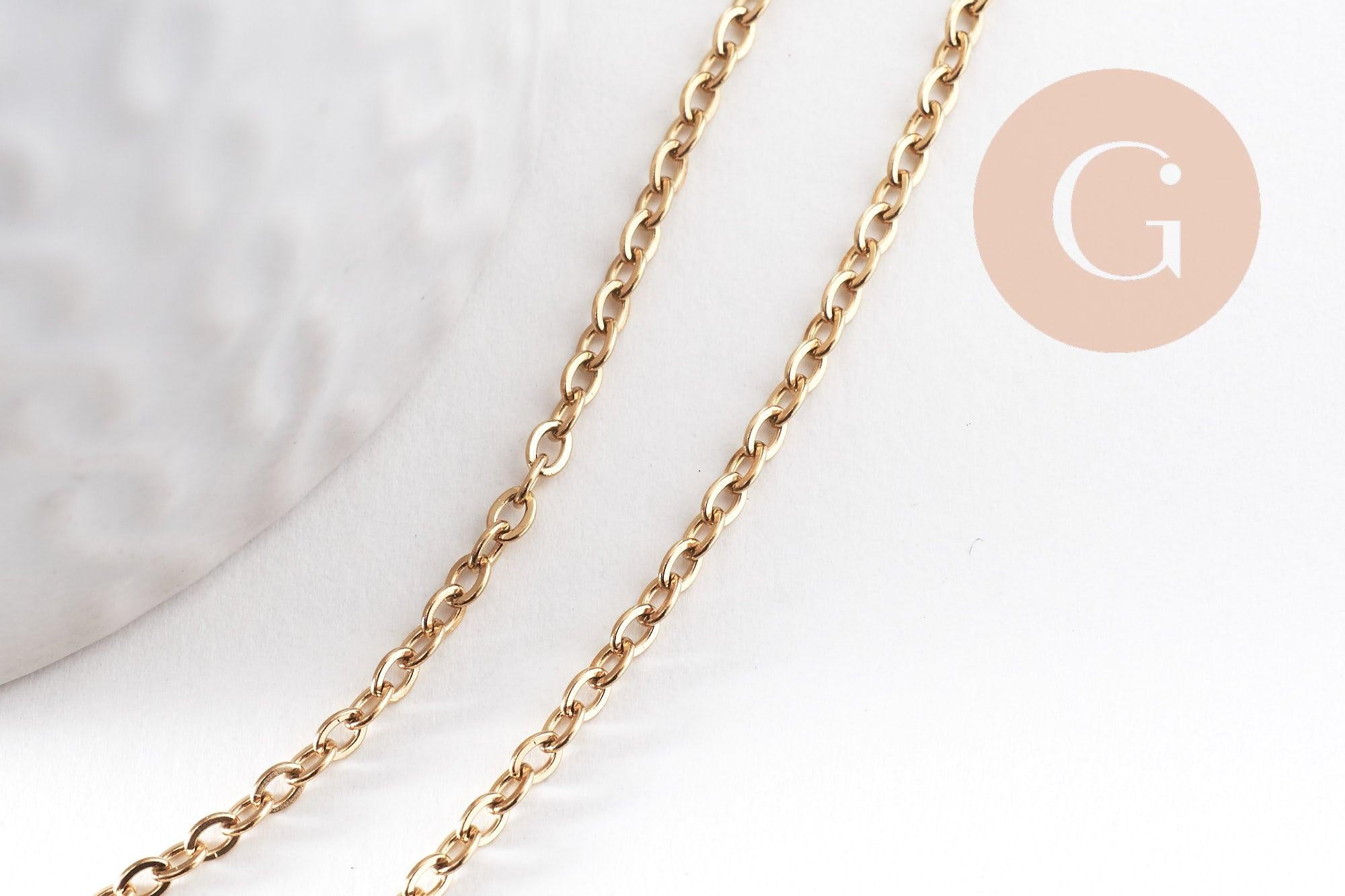 Cadena de eslabones de acero inoxidable 304, chapada en oro de 18 quilates, IP 2,5 mm, x1 metro (G10523)