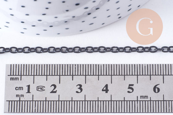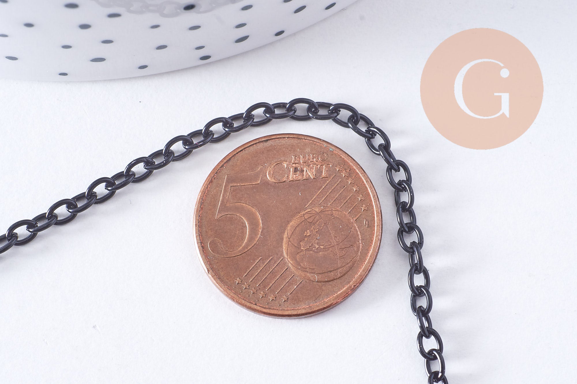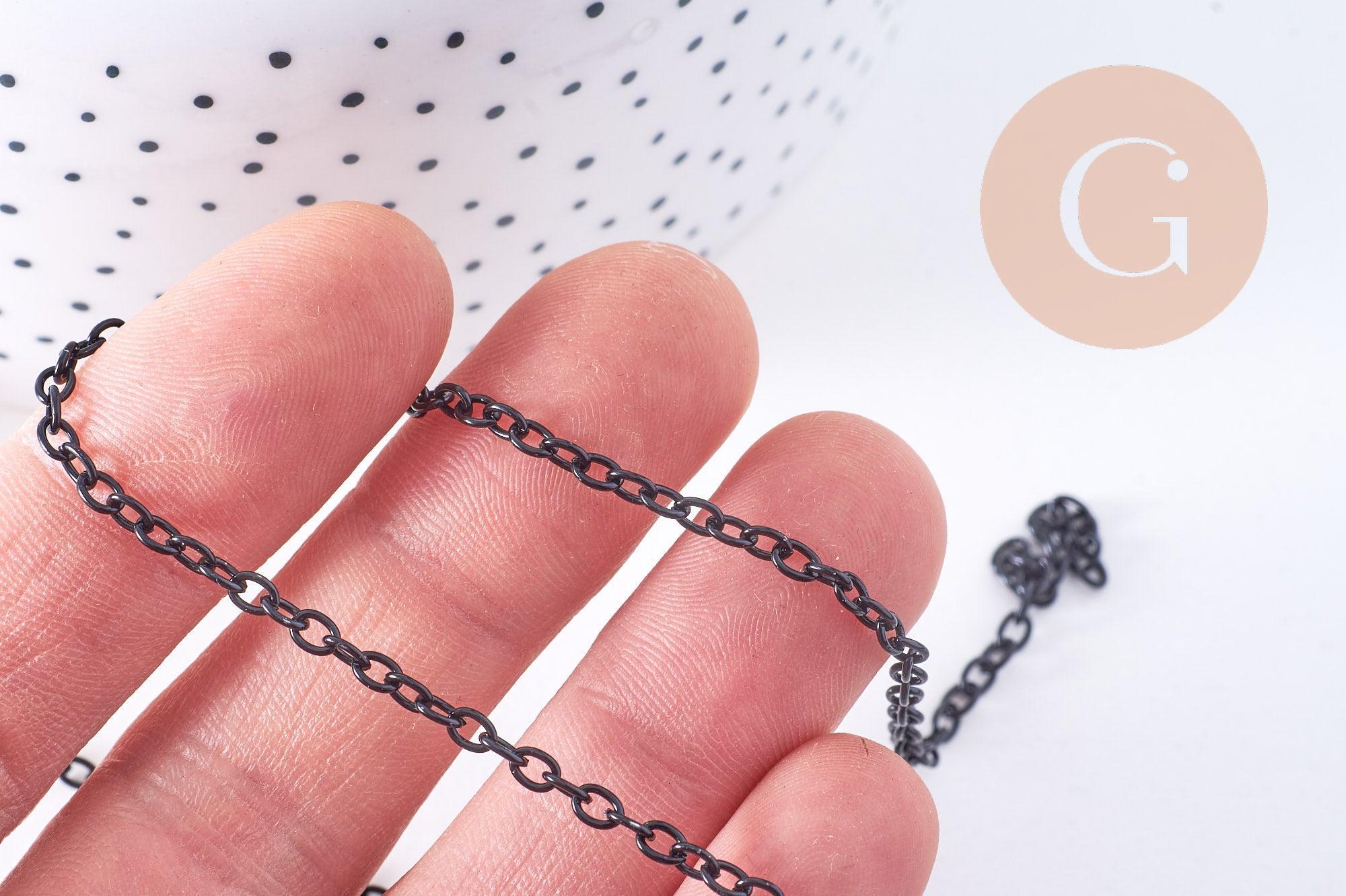Dale un toque urbano y contemporáneo a tus creaciones con esta intensa cadena barbada de hierro negro . Su clásico eslabón ovalado, reinterpretado en negro intenso, la convierte en la base ideal para todos tus proyectos de joyería DIY, desde collares minimalistas hasta pulseras rockeras.