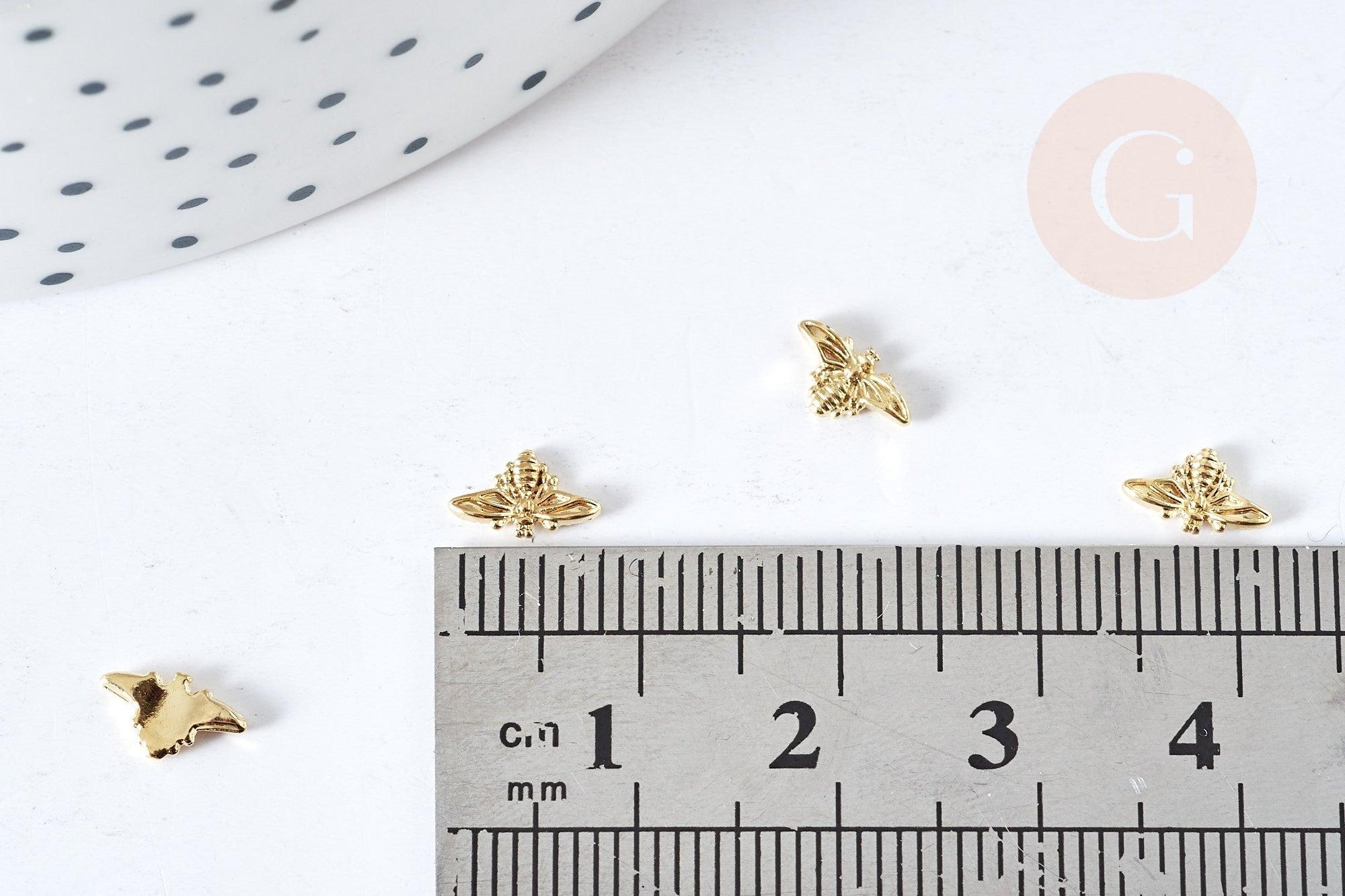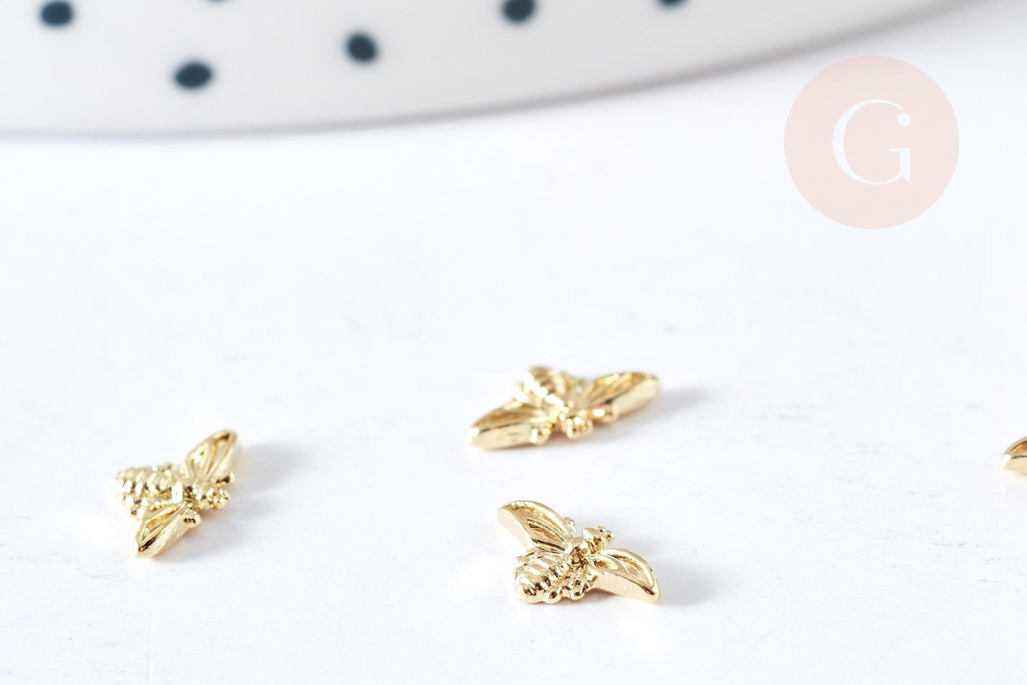 Charm à coller zamac doré abeille 7.5mm,thème nature et insectes, fournitures à coller décors pierres et bijoux, x10 G8525