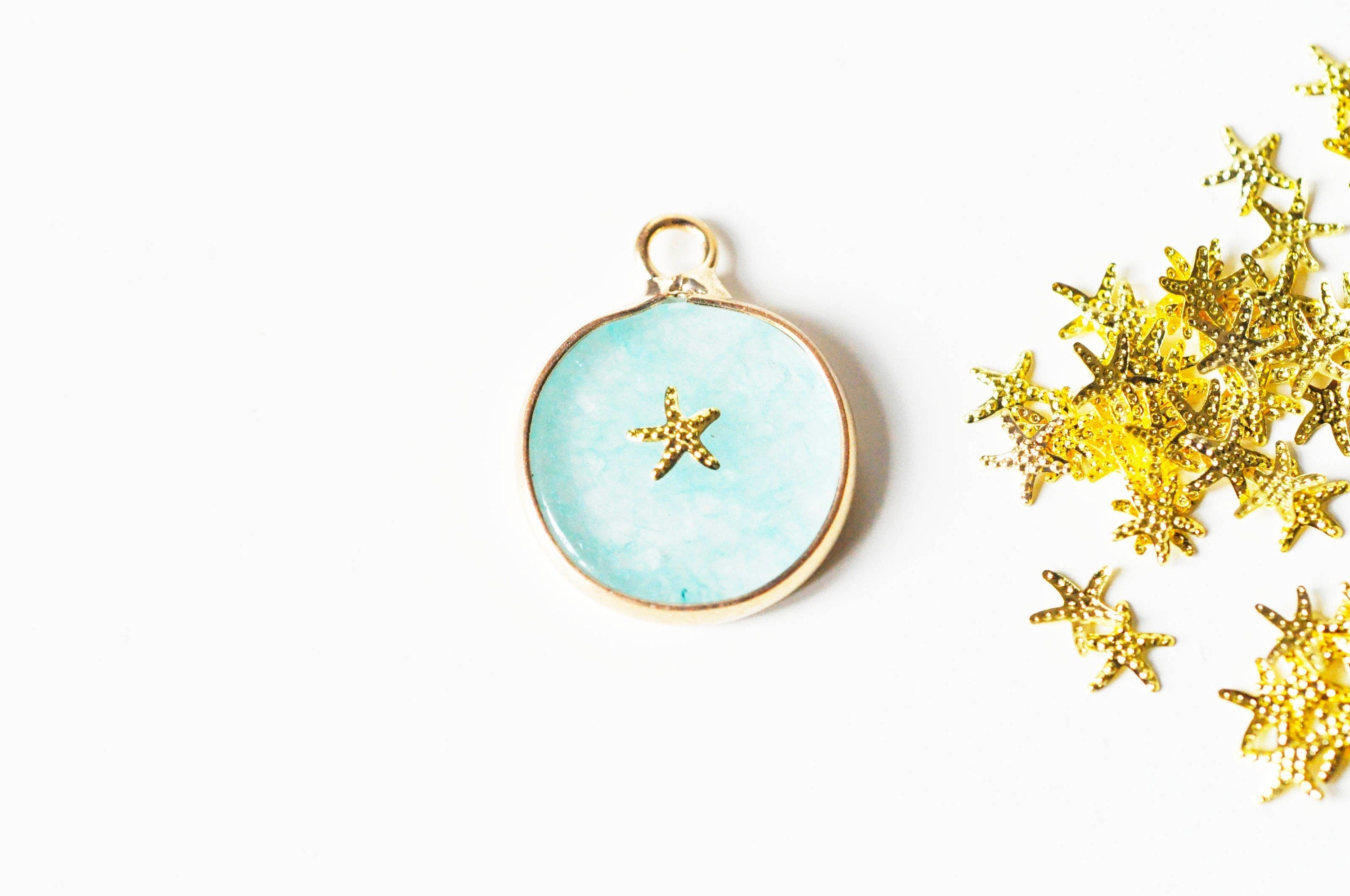Charm para pegar en estrella de mar de zamac dorado, tema de concha de mar, suministros para pegar para decorar piedras y joyas, 5x5mm, 200 G4227