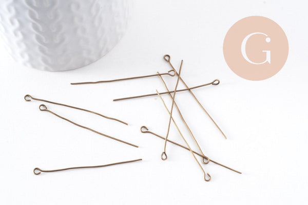Clou tige tête boucle fer bronze 24mm, x10Gr (G10660)
