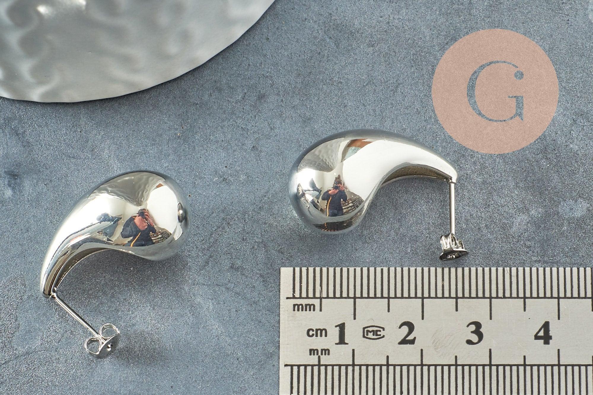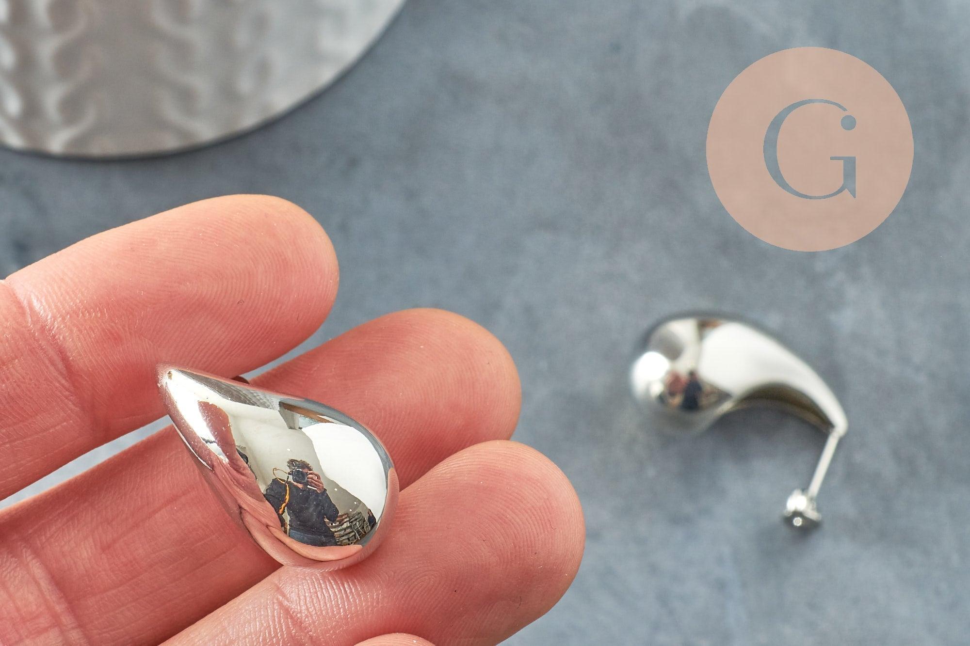 Añade un toque de elegancia atemporal a tu estilo con estos pendientes de botón de latón chapado en platino . Su forma de lágrima abovedada crea un sofisticado efecto burbuja, perfecto para un look moderno y refinado.