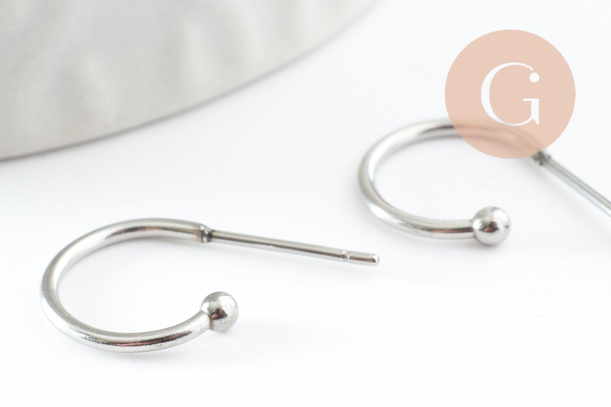 Pendientes criollos en acero inoxidable 304 platino 18,5 mm, pendientes para orejas perforadas sin níquel, x2 G9527