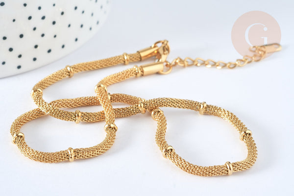 Collar de malla de acero inoxidable bañado en oro de 18 quilates de 5 mm, x1 (G7019)