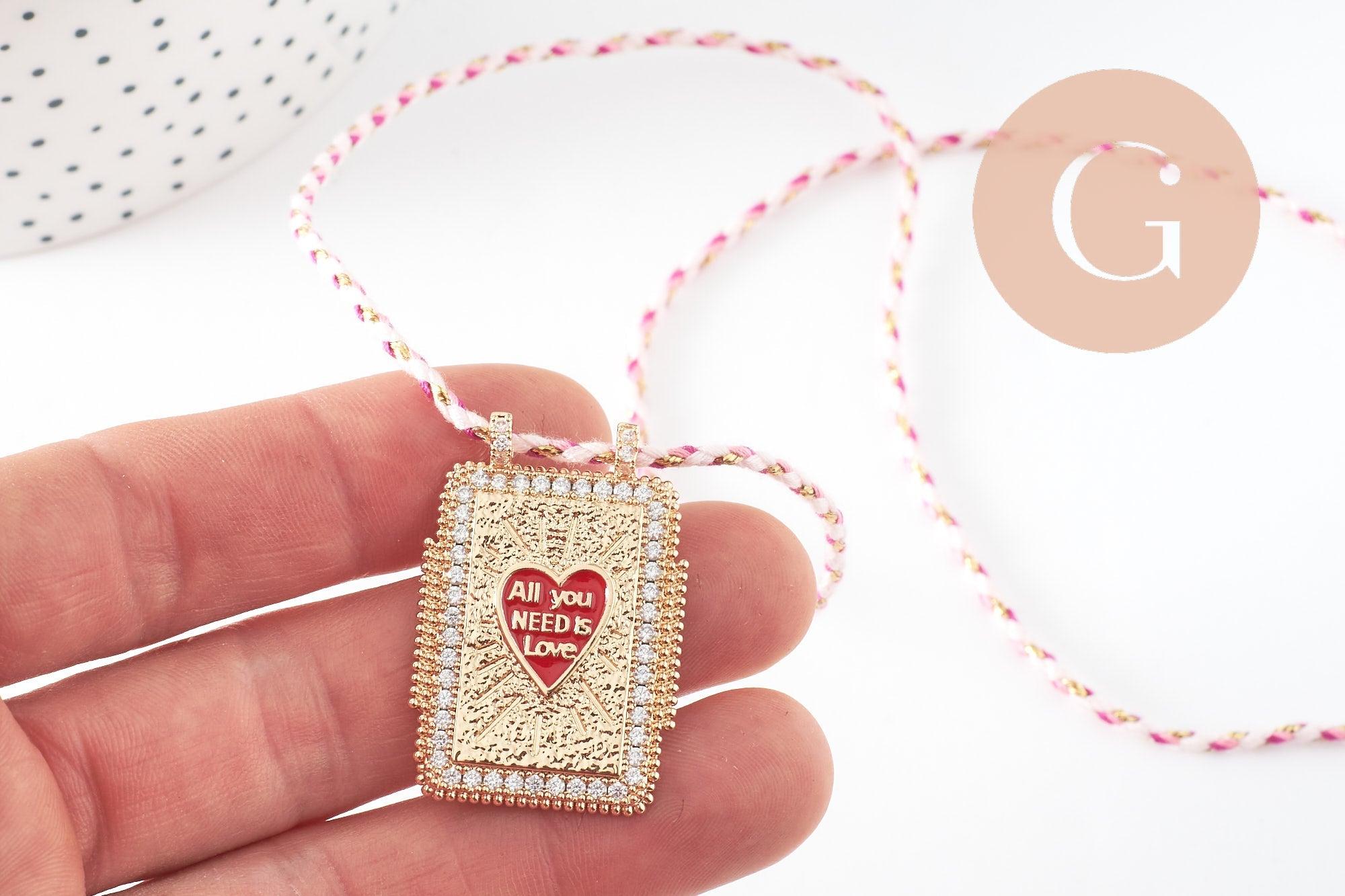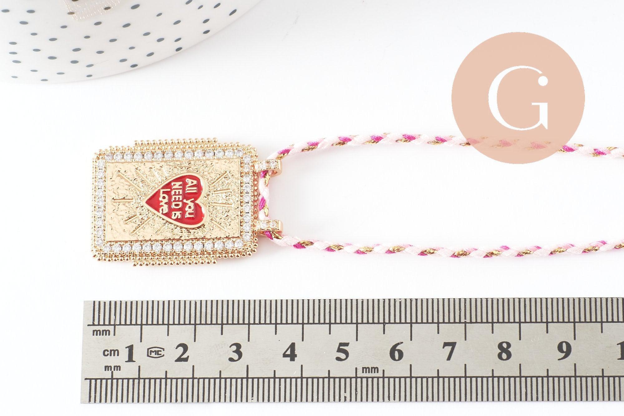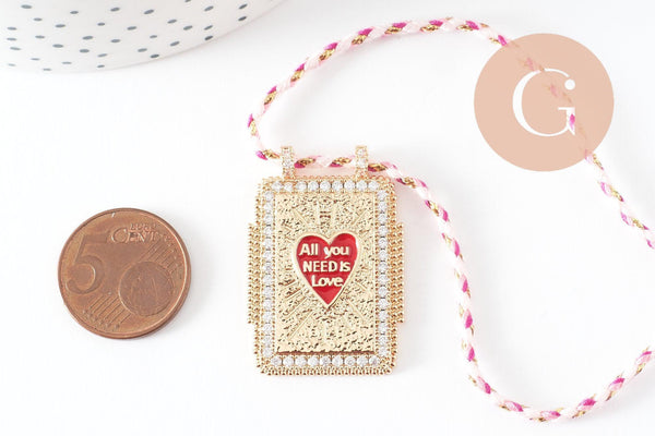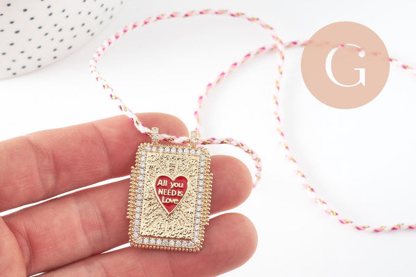 Collar con medalla de esmalte en forma de corazón rojo en zamac bañado en oro, cordón trenzado de 45 cm x1 (G9568)