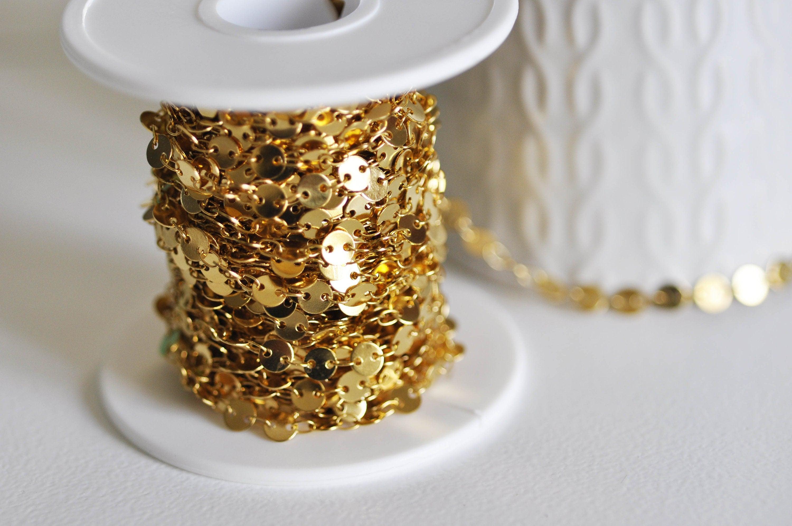 Cadena completa EP de acero bañado en oro de 14k disco de 5mm, x1 metro (G1734)