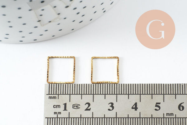 Conector cuadrado de latón crudo acanalado de 12 mm, creación de joyas con colgante geométrico, x50 (G1468)