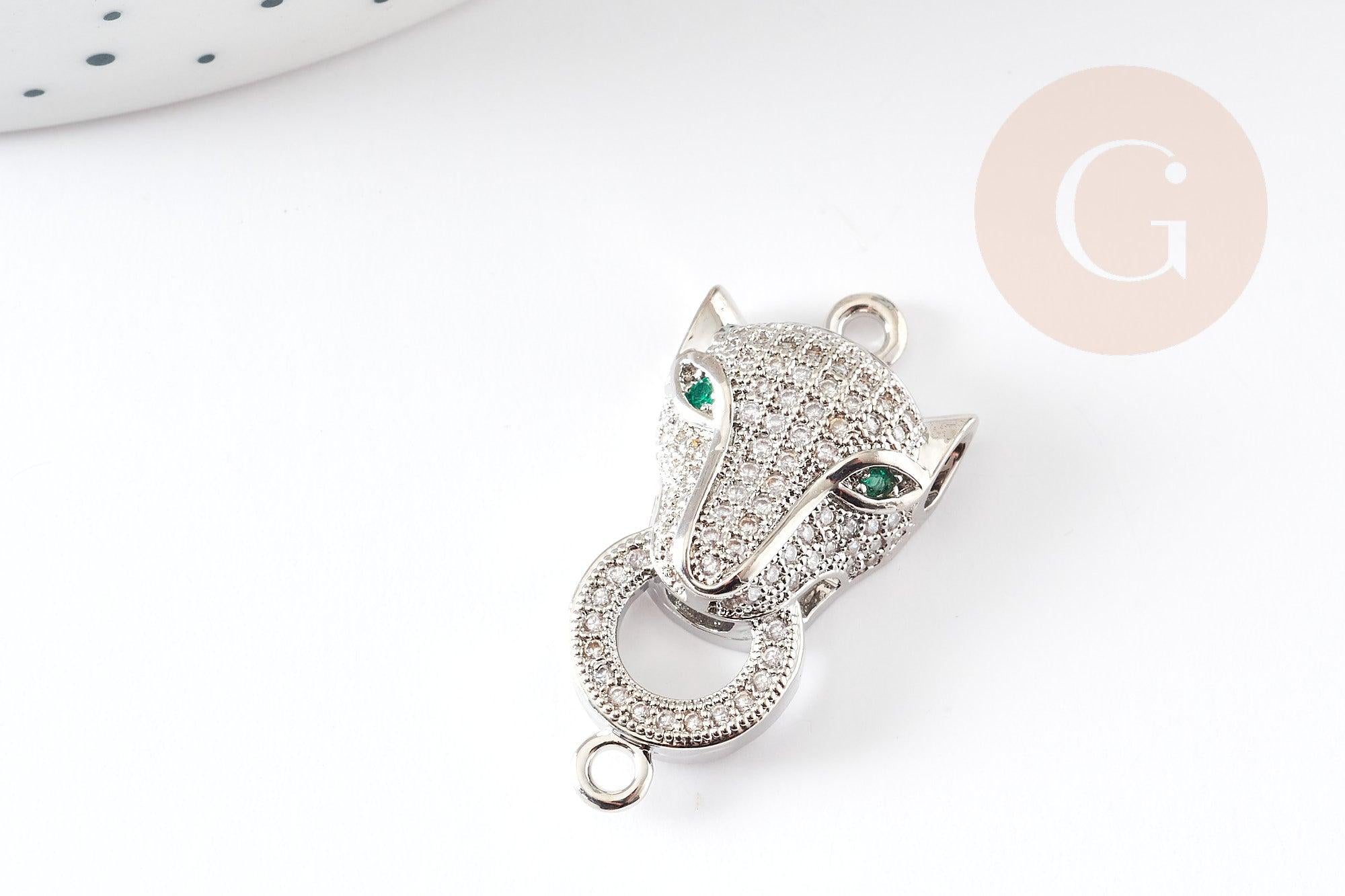 Conector de leopardo de latón dorado y pedrería, colgante de calidad, colgante dorado, cierre de lujo, fabricación de joyas, 29 mm, x1 G4813