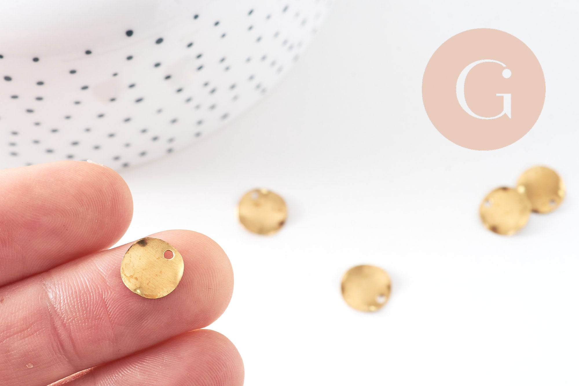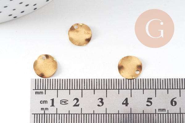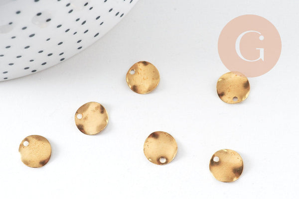 Connecteur médaille martelées laiton brut 10mm, x10 (G2563)