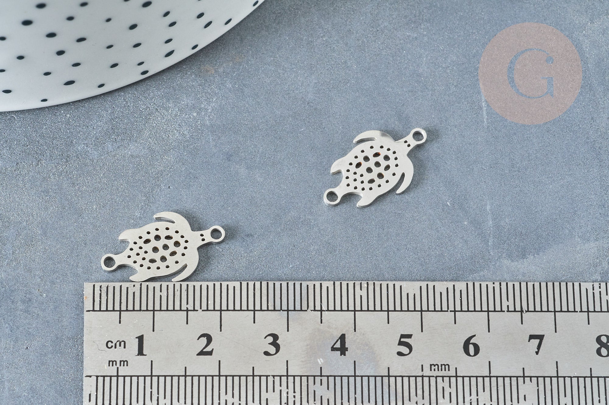 Colgante de conector de tortuga calado 304 acero inoxidable plata 19,5 mm, fabricación de joyas de acero inoxidable, x1 G8325