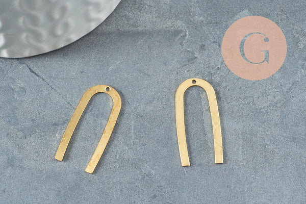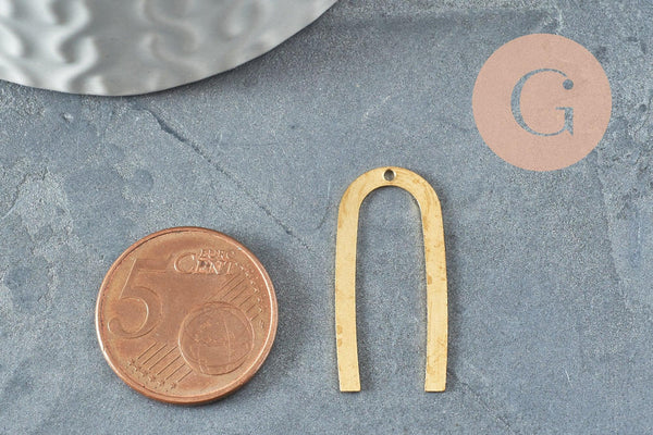 Pendentif U laiton brut 1 trou 27mm,pendentif géométriques création bijoux, x5 (G3240)