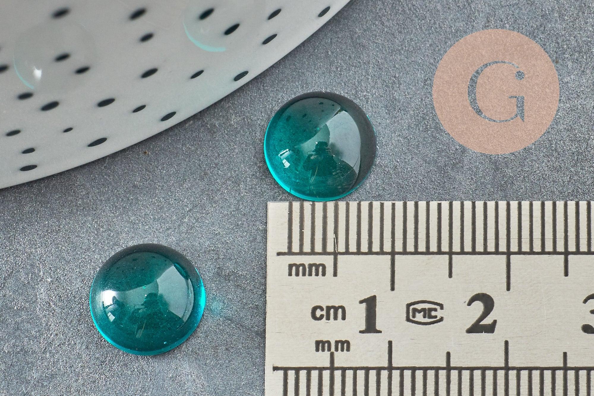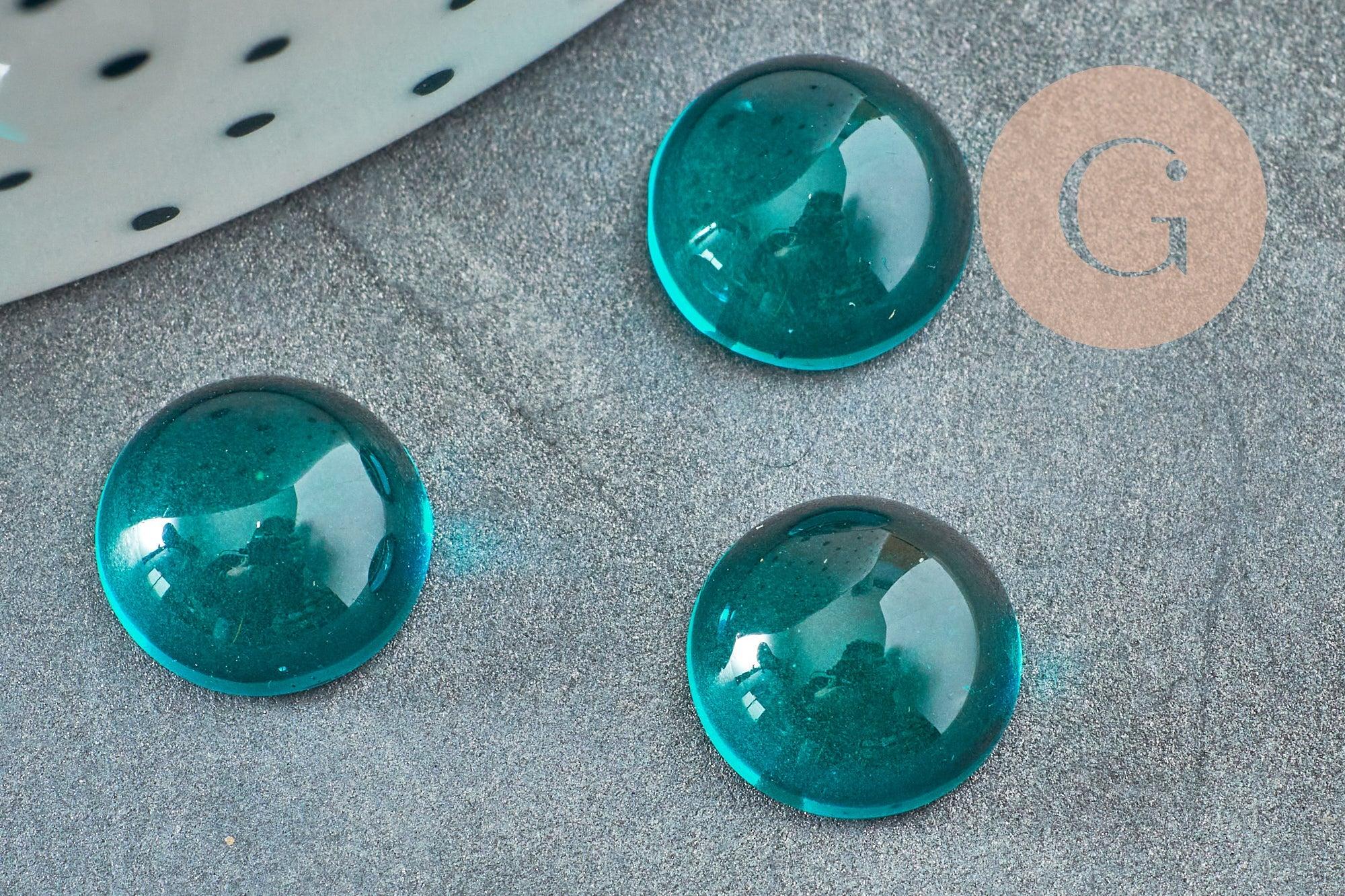 Cabujón redondo, vidrio liso color turquesa oscuro, 10 mm, x1 (G8605)