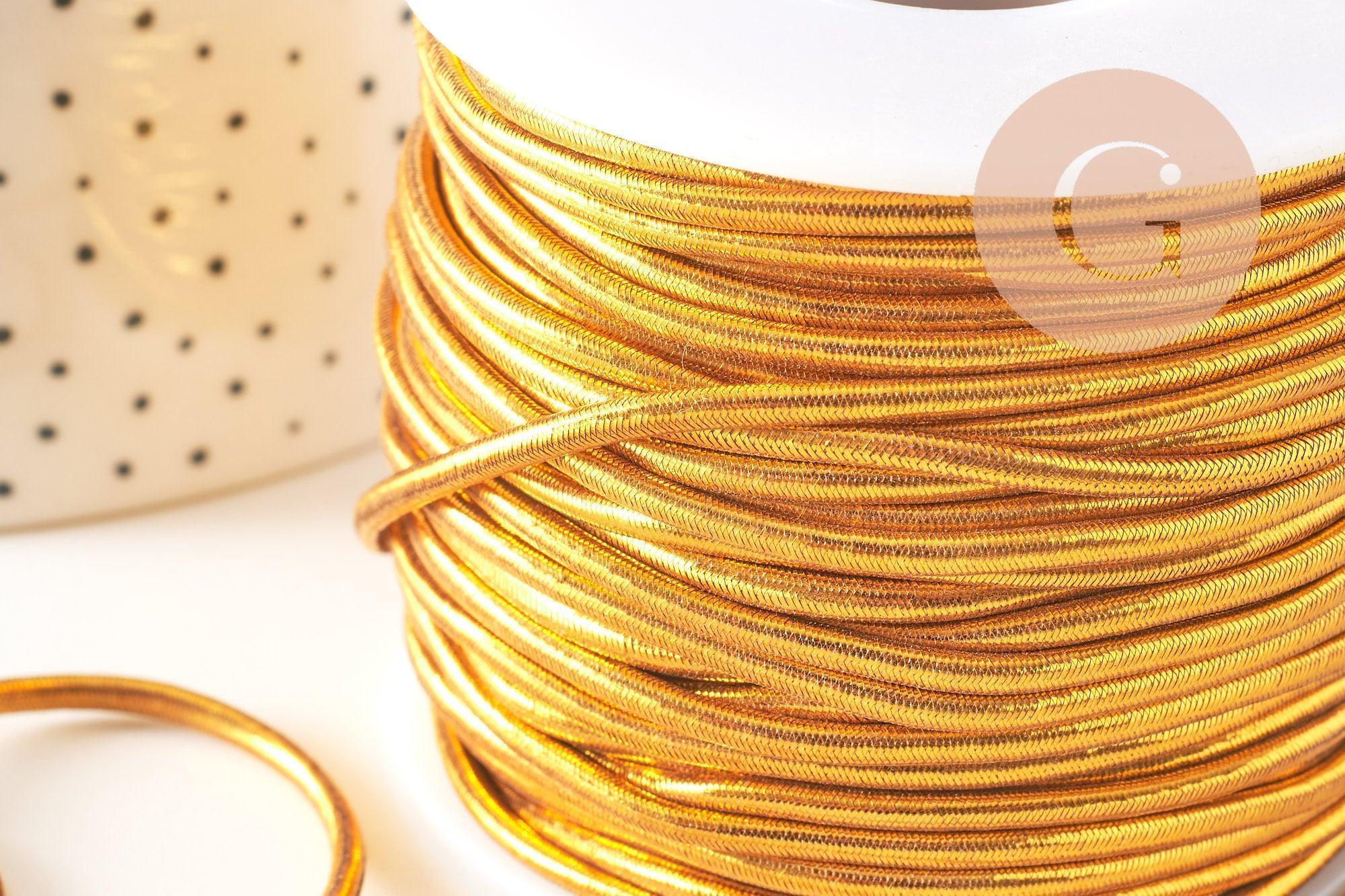 Cordón de nailon elástico dorado de 2,5 mm , imprescindible para todos tus proyectos creativos: joyería DIY, accesorios, bordados y scrapbooking. Su bonito acabado metálico dorado aporta brillo y elegancia a tus creaciones.