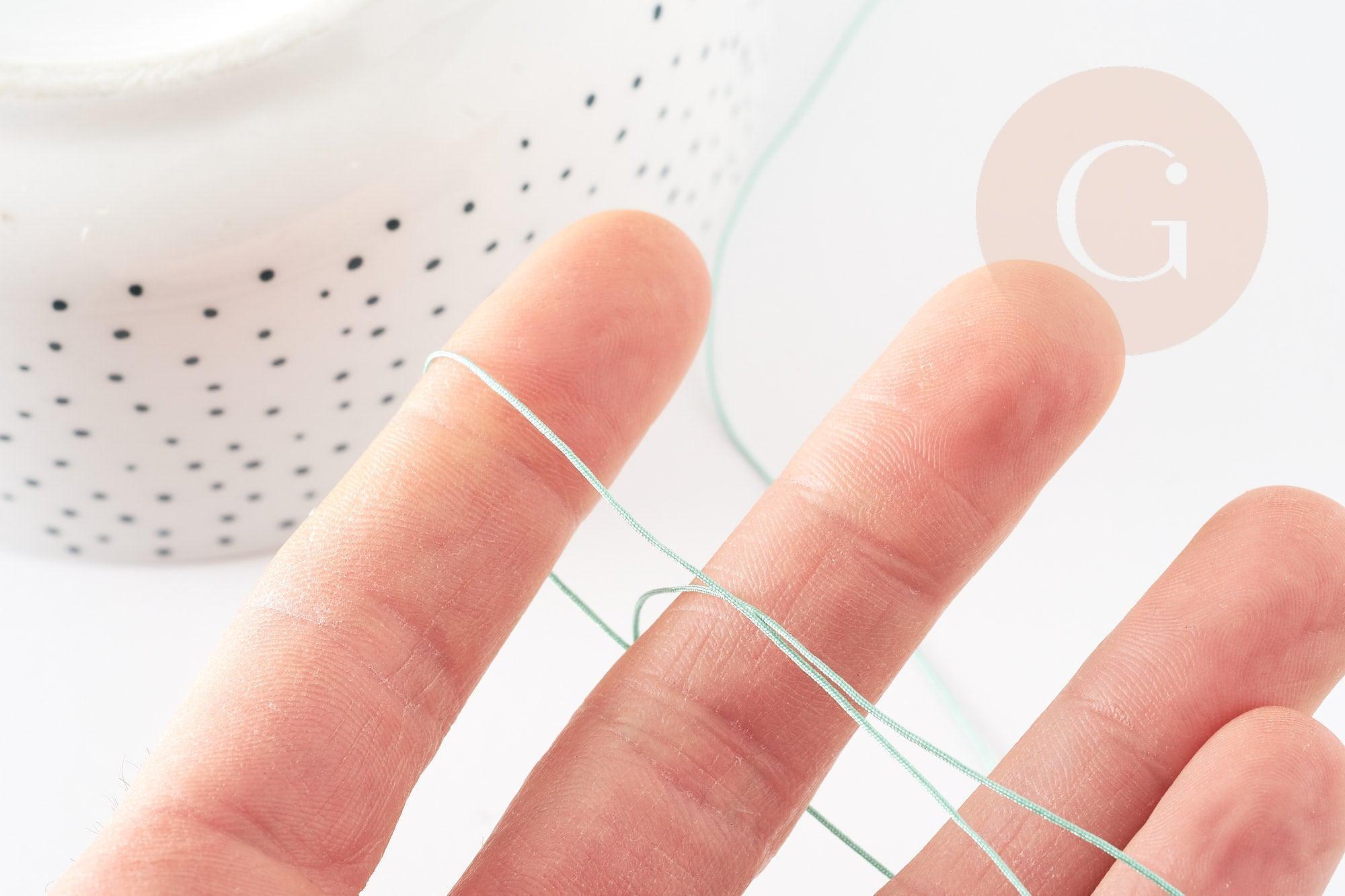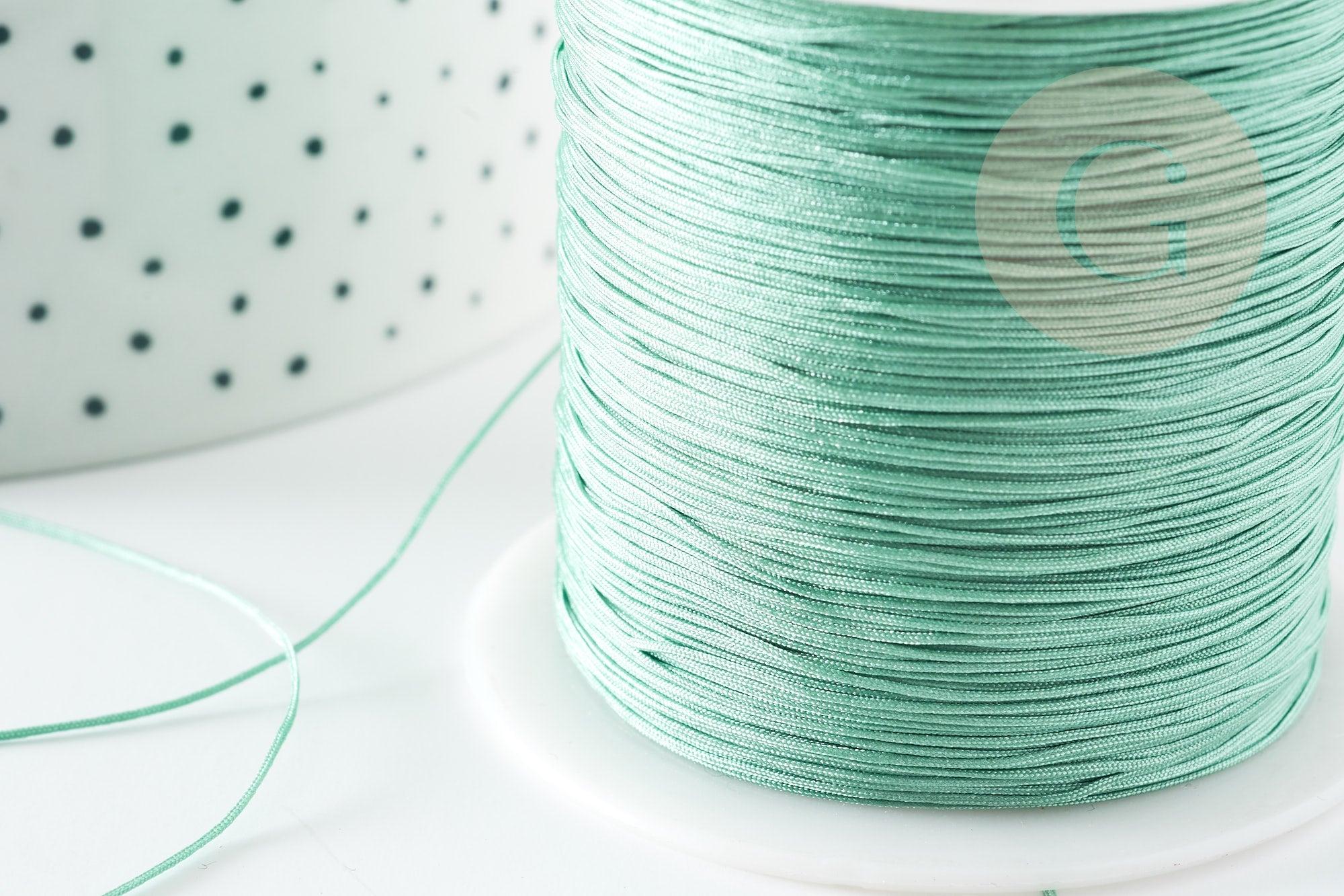 Este hilo jade turquesa claro en poliéster trenzado ofrece una combinación de robustez y flexibilidad gracias a su acabado metalizado. Es un elemento clave para la elaboración de joyas y está disponible en diferentes colores y tamaños para adaptarse a tus proyectos.