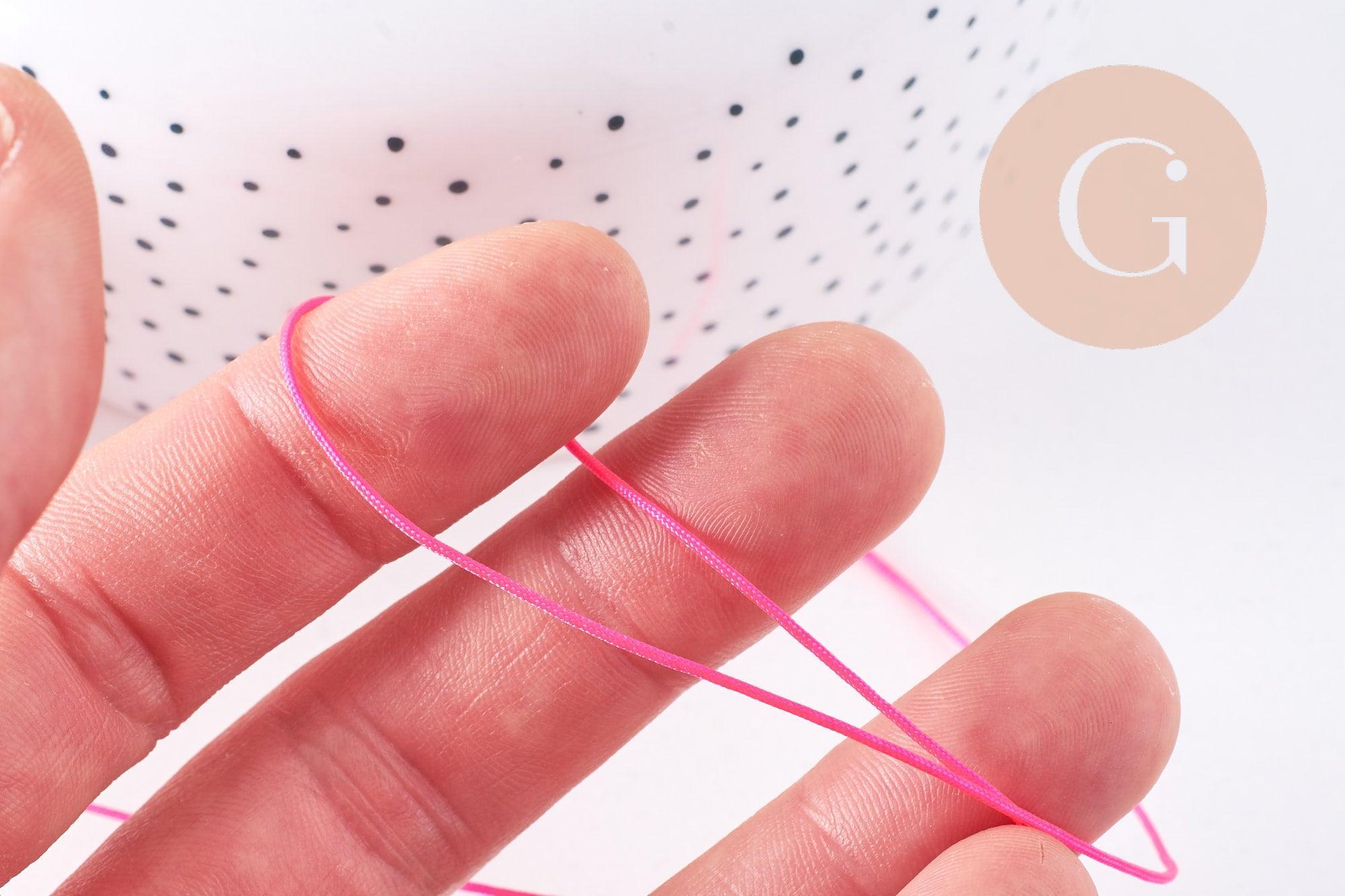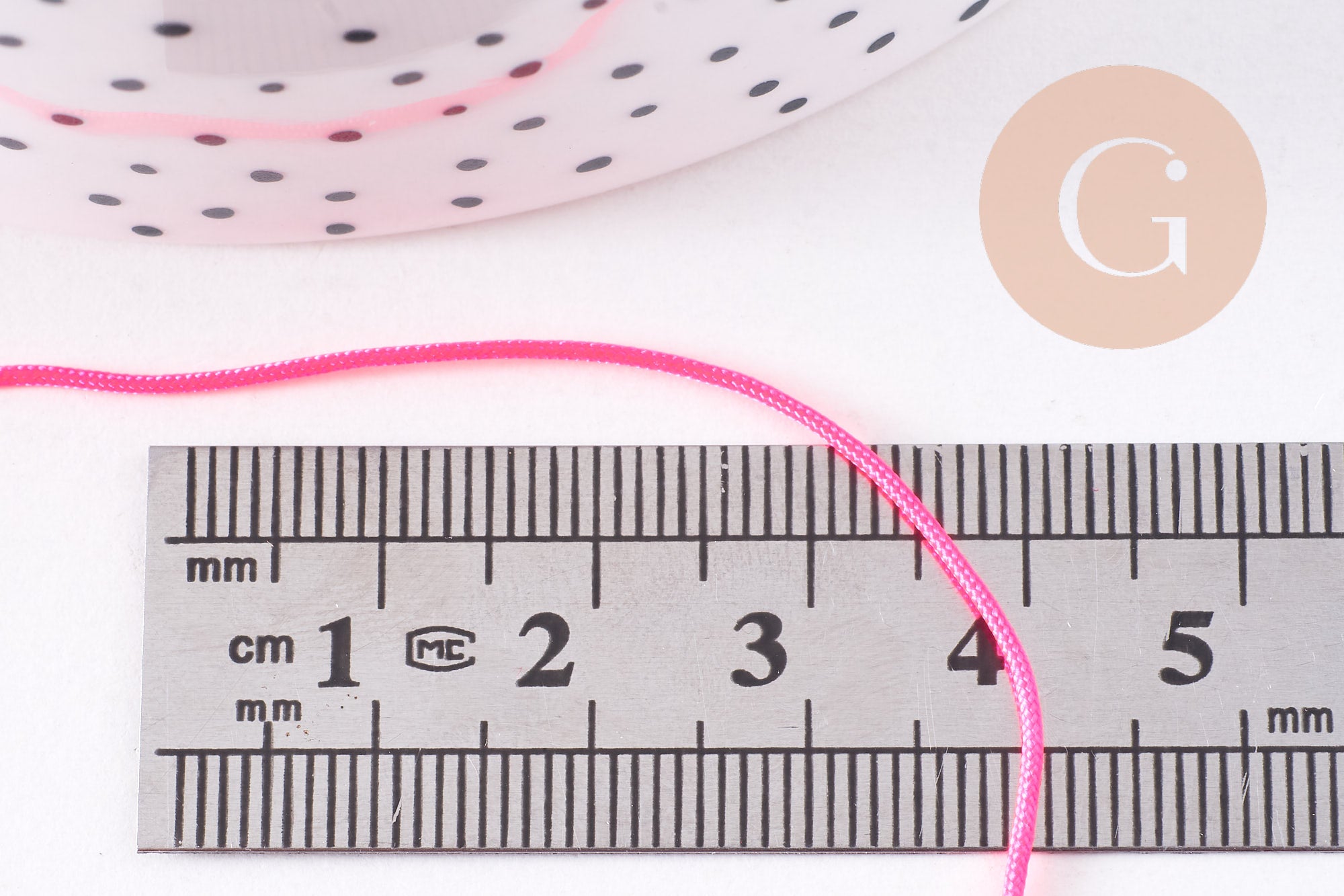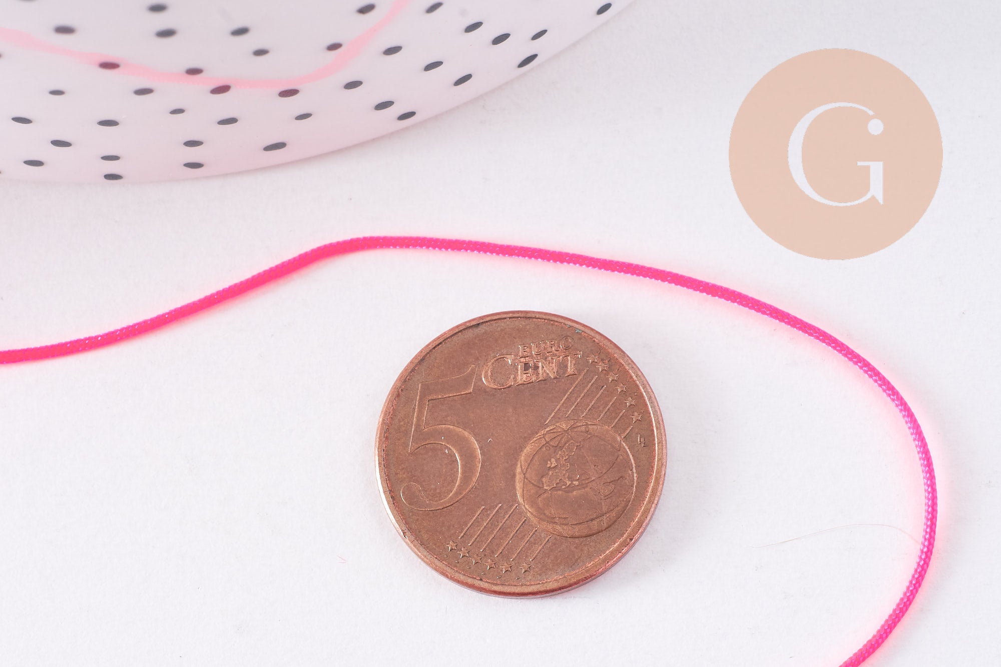 Este cordón trenzado de poliéster rosa fluorescente es perfecto para tus proyectos de joyería, macramé o costura creativa. Fino y resistente, es ideal para crear pulseras, collares y dijes, o para anudar cuentas y colgantes.