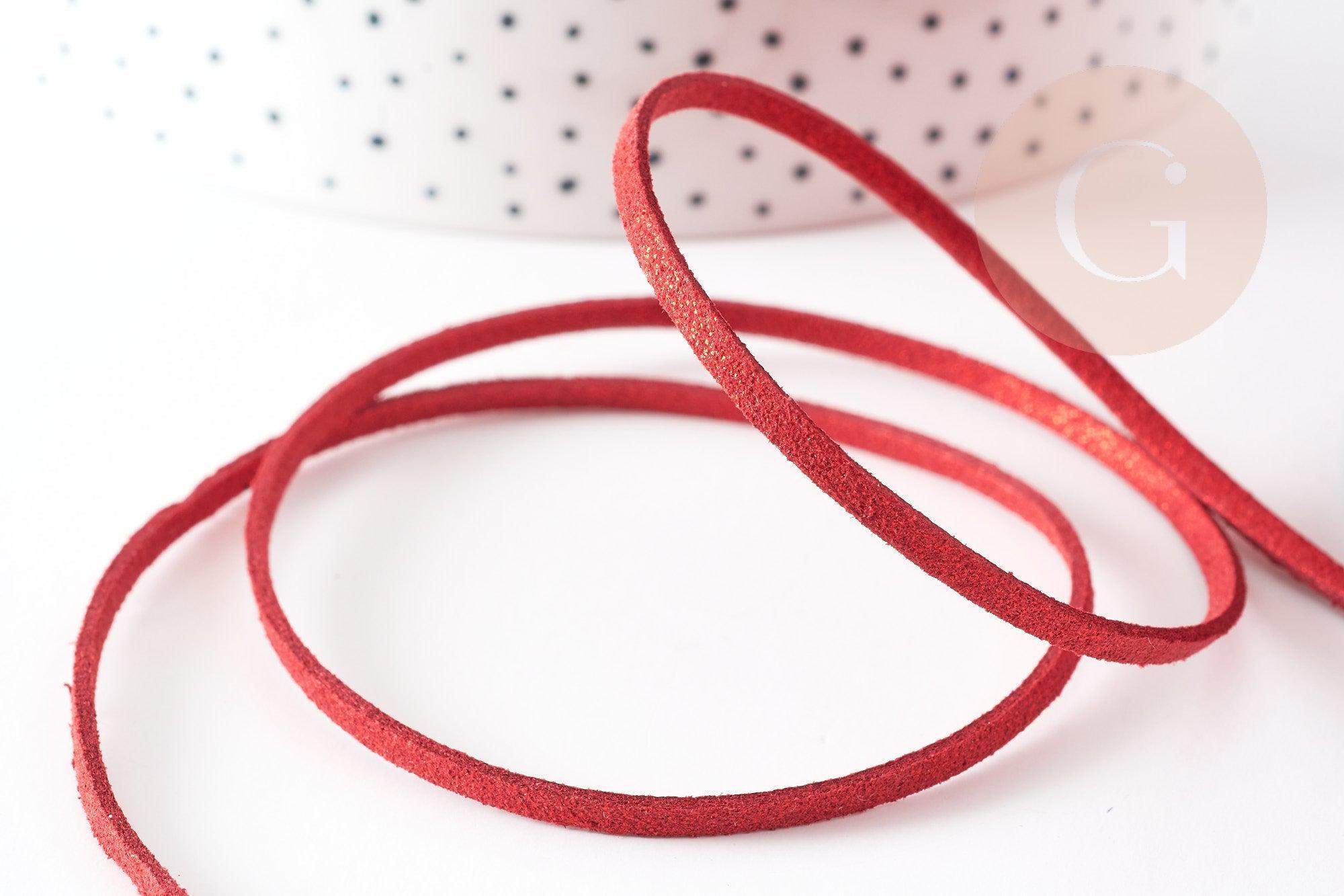 Dale un toque de brillo a tus creaciones con nuestro cordón de ante rojo con purpurina , una imitación de cuero de alta calidad. Con un ancho de 3-4 mm y disponible en longitudes de 1 metro, este cordón es ideal para añadir un toque elegante y festivo a tus proyectos de joyería DIY.