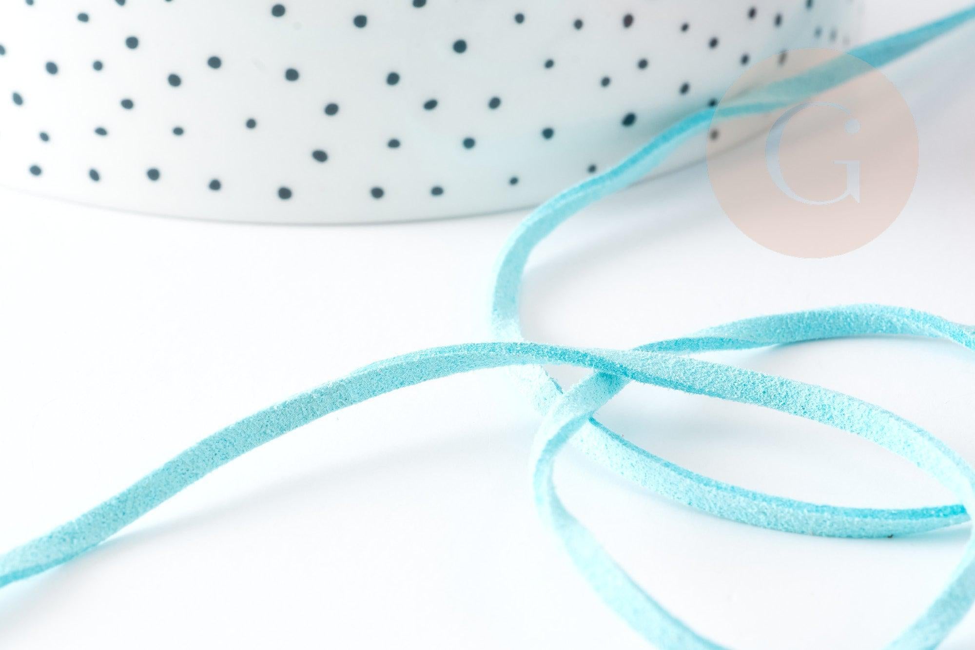 Captura la esencia del estilo con nuestro cordón de ante turquesa , una imitación de cuero de 3-4 mm de espesor. Disponible en 1 metro de largo, este cordón es una selección deslumbrante para aportar un toque de color vibrante a sus diseños de joyería.