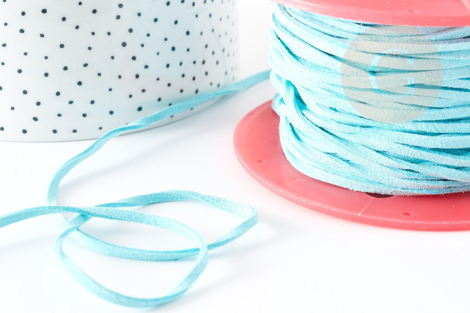 Este cordón de ante turquesa es una opción fantástica para quienes buscan añadir un toque de frescura y originalidad a sus proyectos de joyería y manualidades.