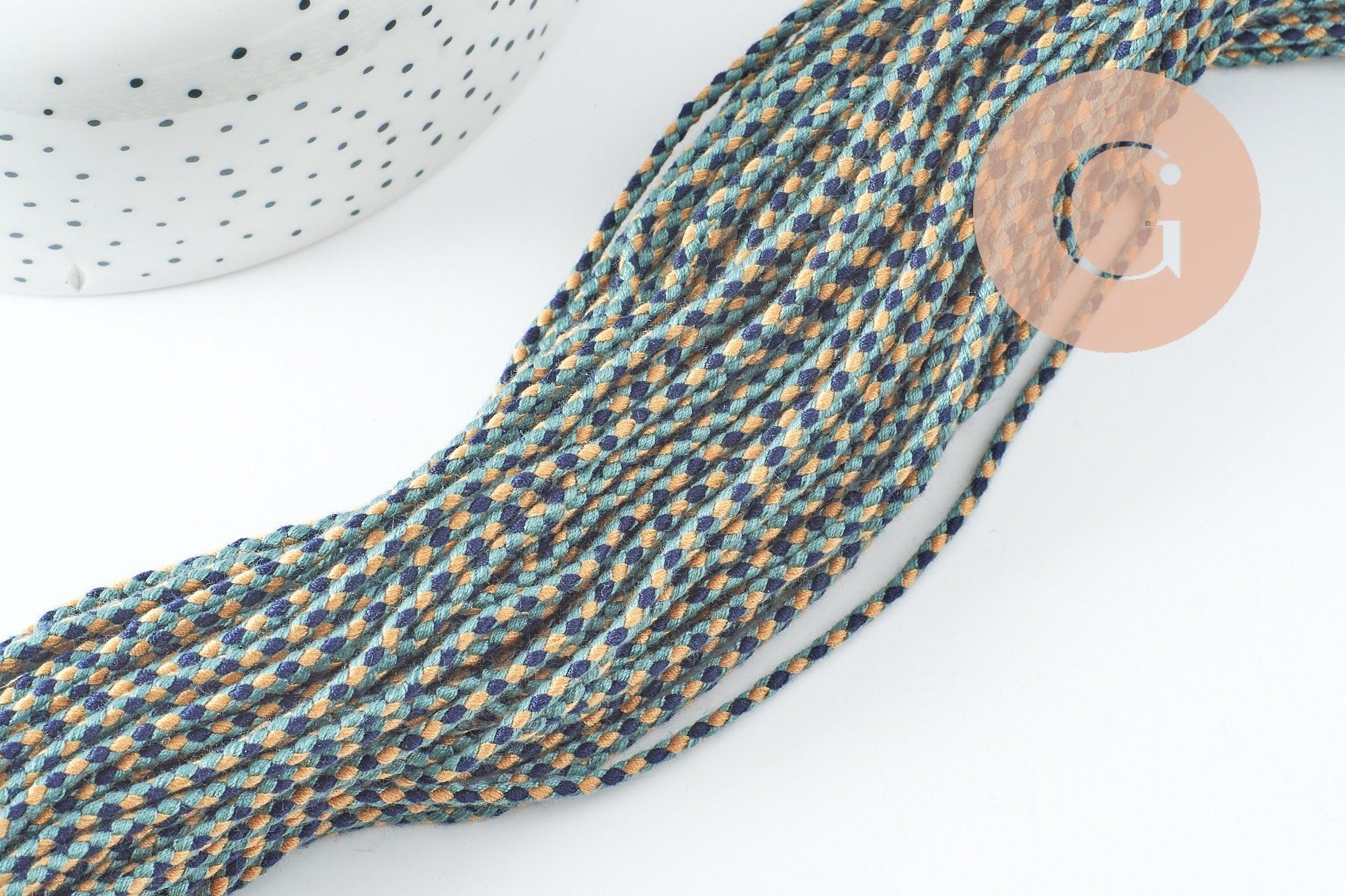Cordón trenzado azul beige turquesa 2mm, x1 metro (G10003)