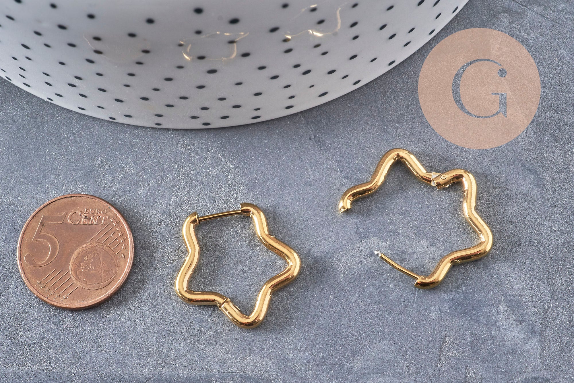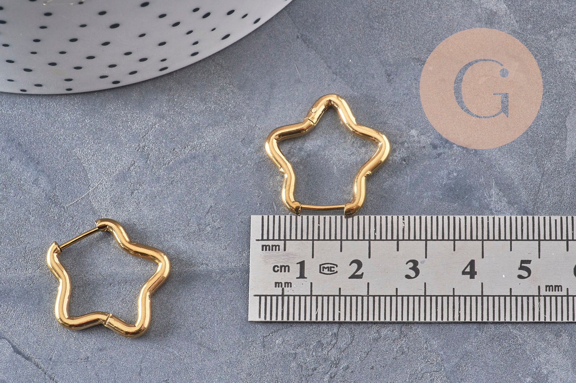 Pendientes de aro con forma de estrella en acero inoxidable 201 con baño de oro de 18 quilates, IP 23 mm, par VALIDE