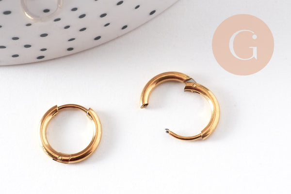 Apportez une touche chic, moderne et intemporelle à vos bijoux avec ces créoles fines en acier 316L inoxydable doré IP. Élégantes et minimalistes, elles se portent seules pour un look raffiné ou s’utilisent comme base idéale pour des boucles d’oreilles DIY personnalisées. Grâce à leur confort et leur résistance, elles conviennent parfaitement à un port quotidien sans crainte de l’eau ni de la transpiration.