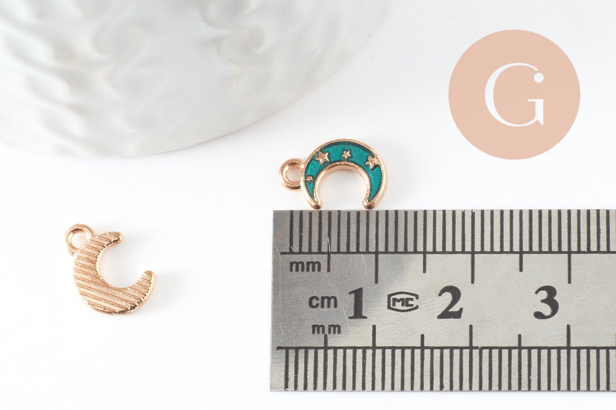 Colgante de luna creciente y estrella, esmalte azul, zamac chapado en oro, 11,5 mm, 1 unidad (G5920)