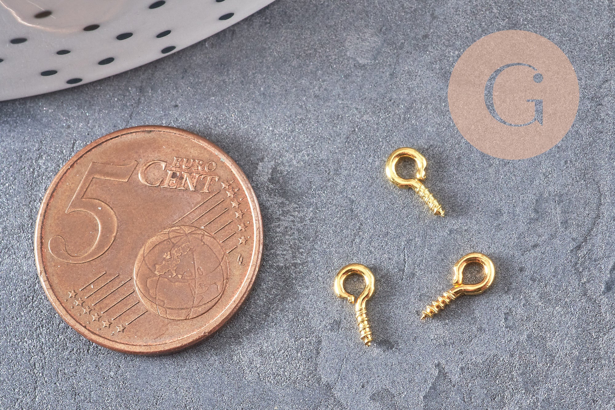 Dale un toque práctico y económico a tus creaciones con estos ganchos de rosca de hierro chapados en oro . Fáciles de usar, transforman fácilmente tus cuentas semiperforadas, arcilla polimérica o resina en colgantes únicos.