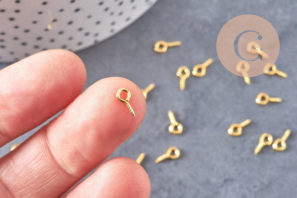 Crochets piton à visser fer doré 10mm, x20 (G10796)