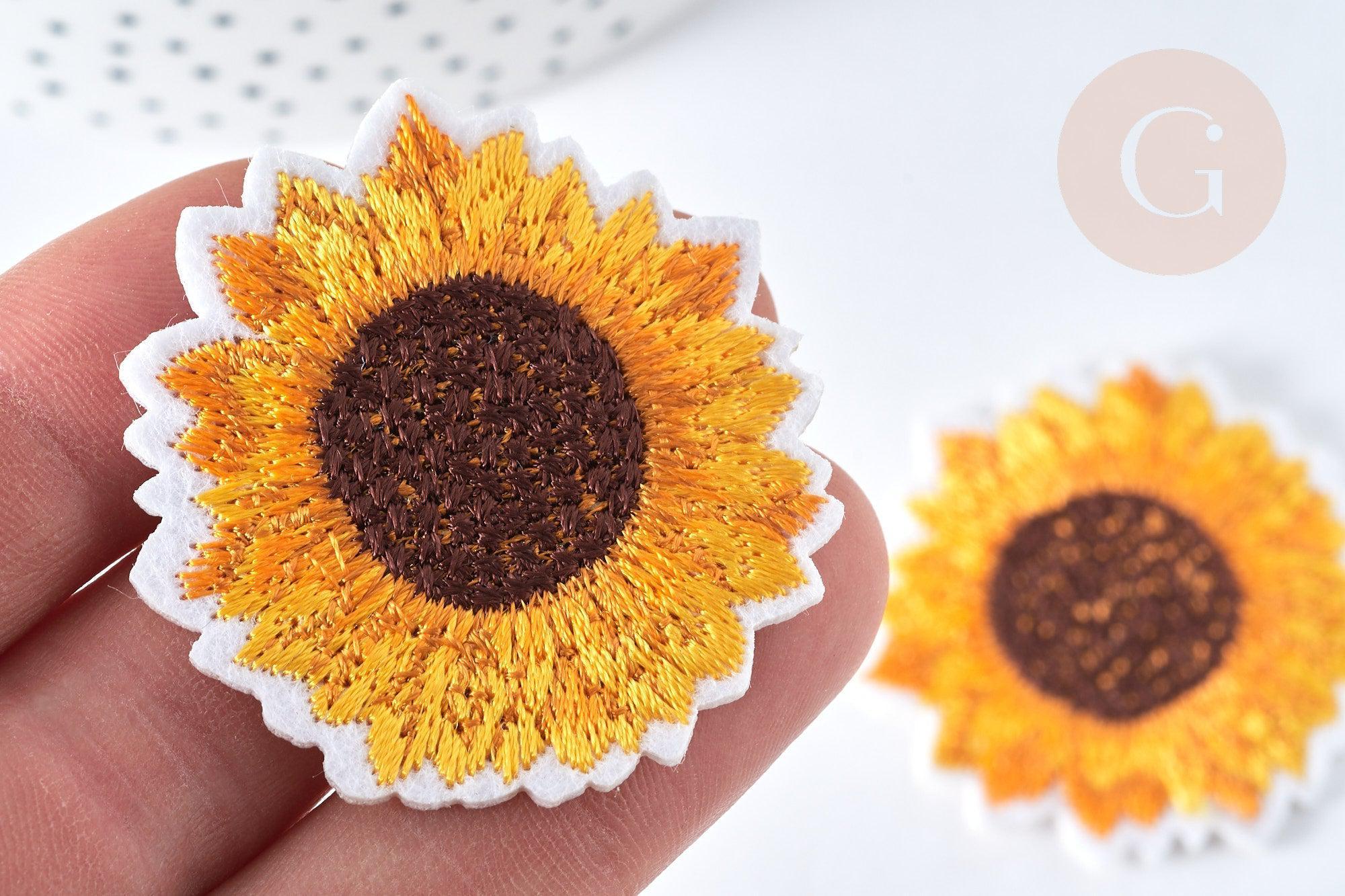 Insignia bordada termoadhesiva de girasol amarillo de 44 mm (G7436)
